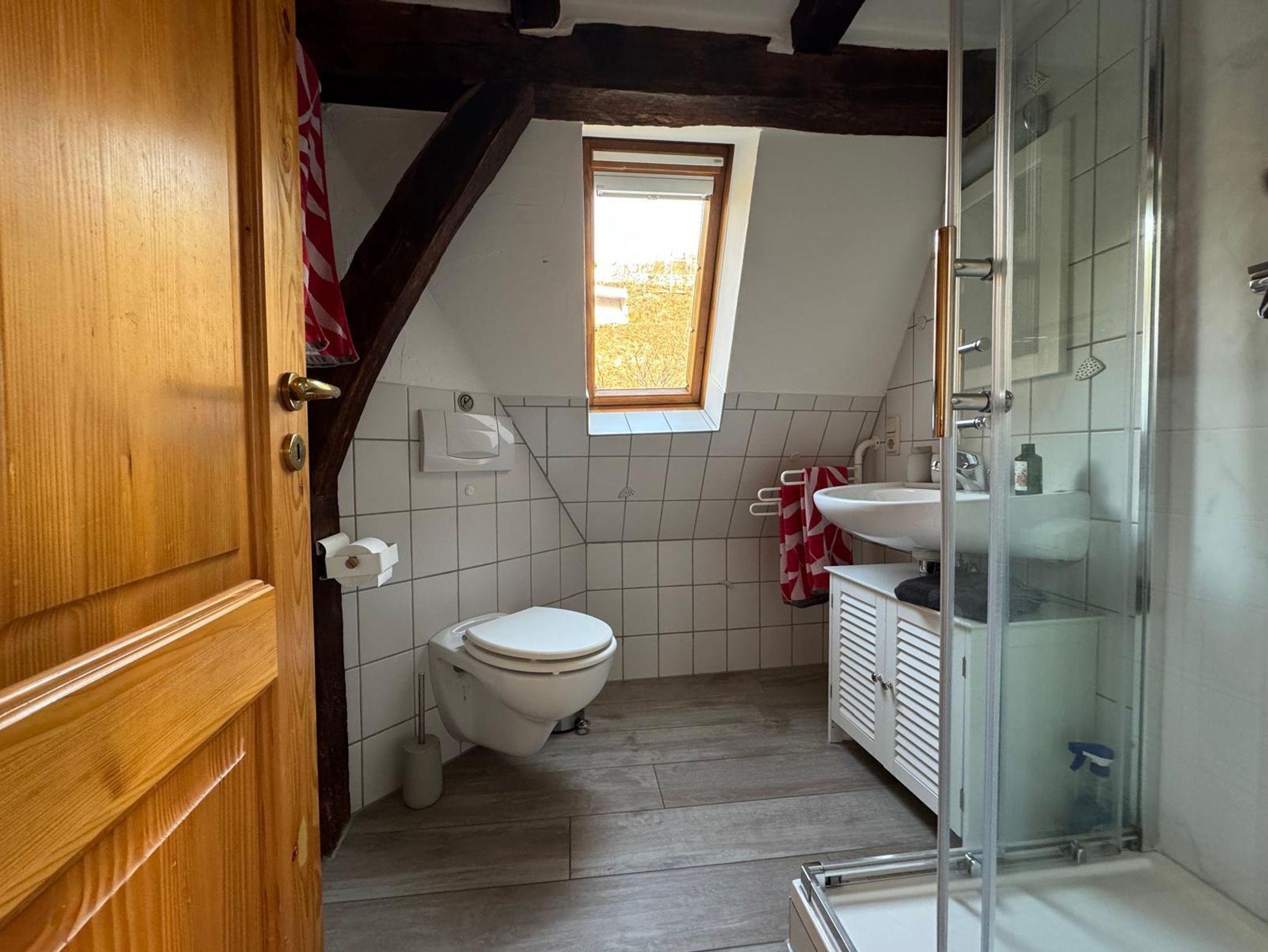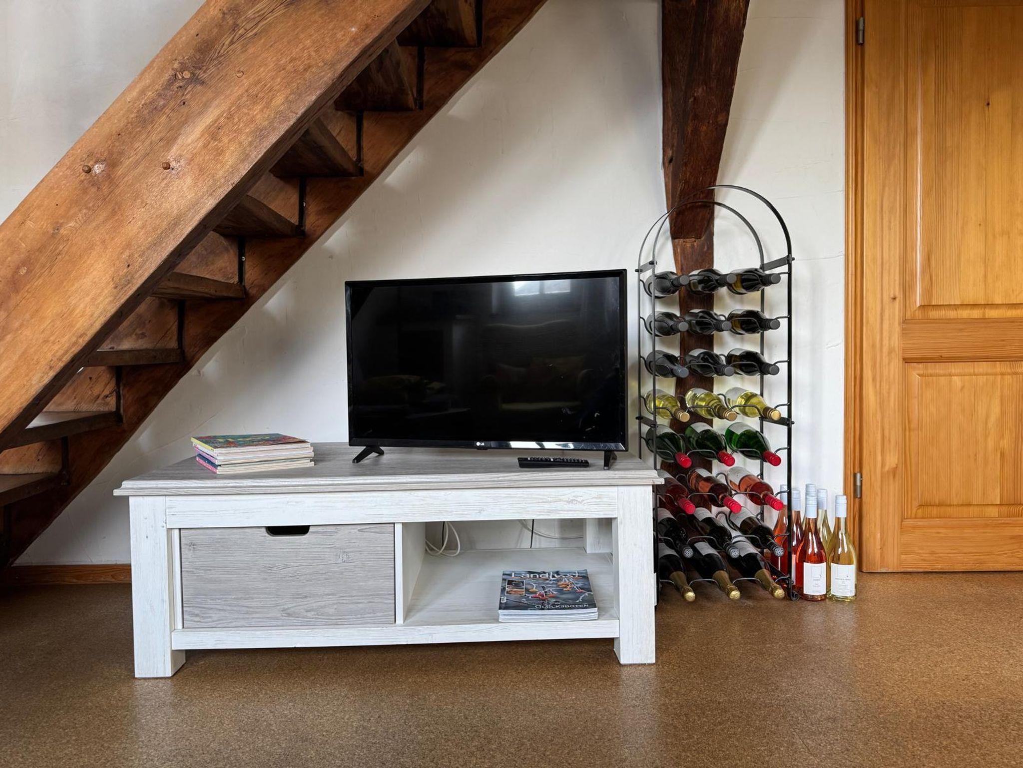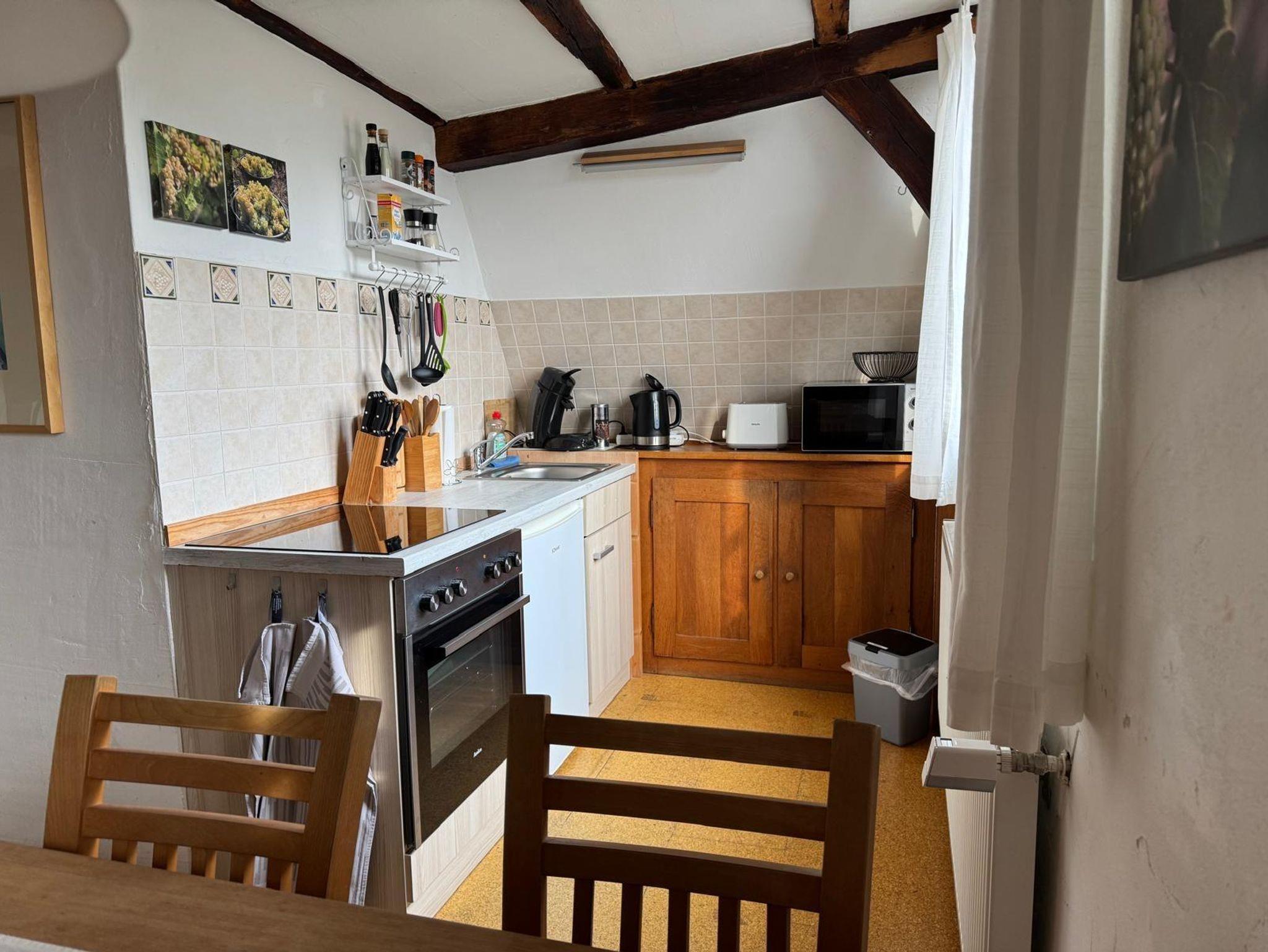 Die Ferienwohnung ist ca. 55 qm groß, verfügt über ein neues Duschbad, vollausgestattete Küche mit neuem Herd mit Ceranfeld, Backofen, Microwelle, Toaster, Heißwasserbereiter, Kühlschrank mit Eisfach, Senseo-Maschine inkl. Kaffee-Pads und großem Flachbildschirm TV. Das Doppelbett befindet sich auf der Galerie und ist bequem über eine Treppe zu erreichen. Bettwäsche, Hand- und Geschirrtücher sind vorhanden.