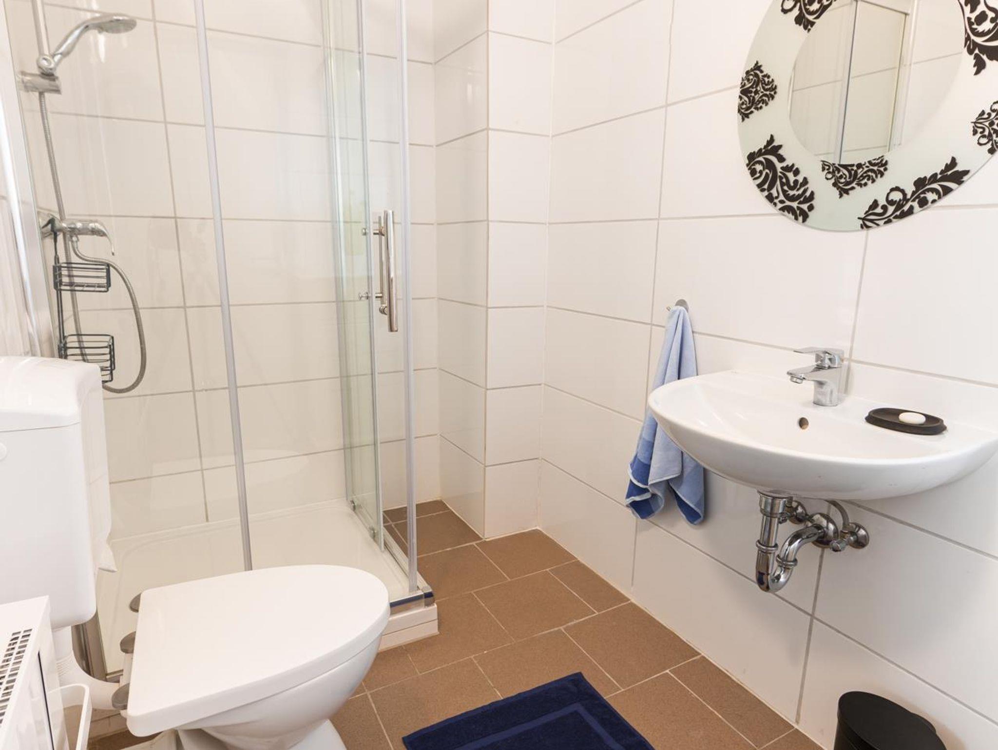 Das Haus verfügt über drei Bäder. Das geräumigste Tageslichtbad mit Badewanne und Dusche befindet sich im DG und ist über den Flur zugänglich. Ein weiteres Duschbad liegt im 1. OG ensuite zum Schlafzimmer, das dritte im Erdgeschoss.