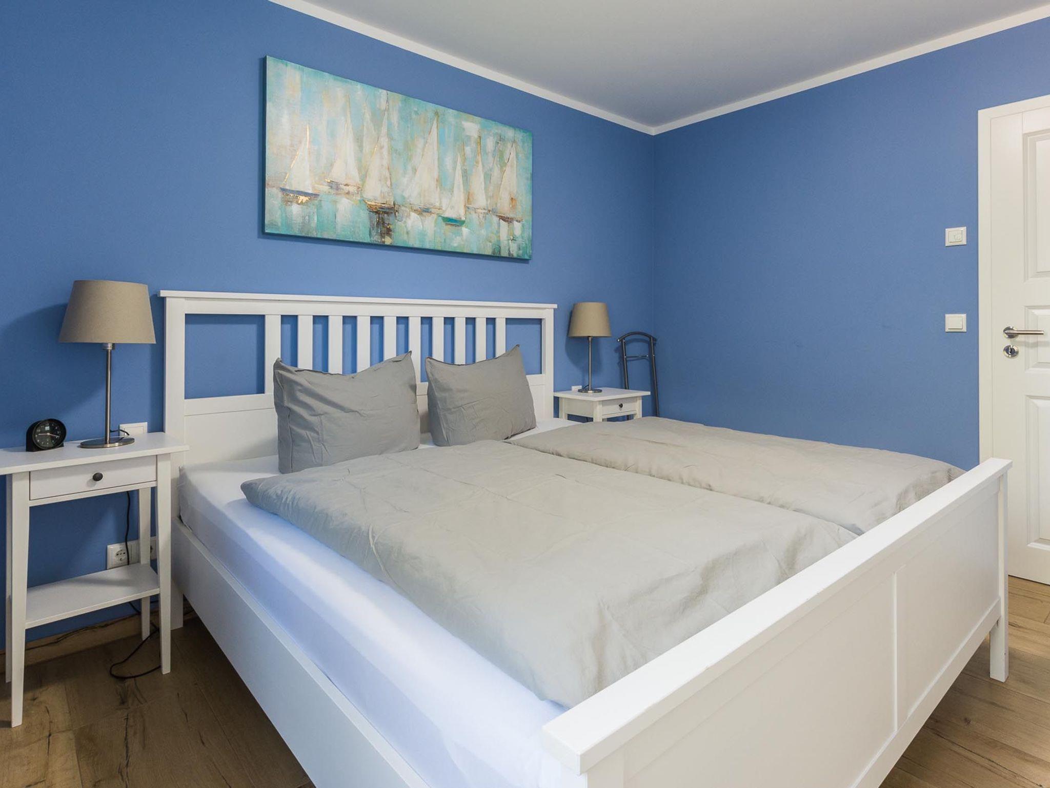 Im Schlafzimmer garantiert ein sehr komfortables Doppelbett erholsamen Schlaf.