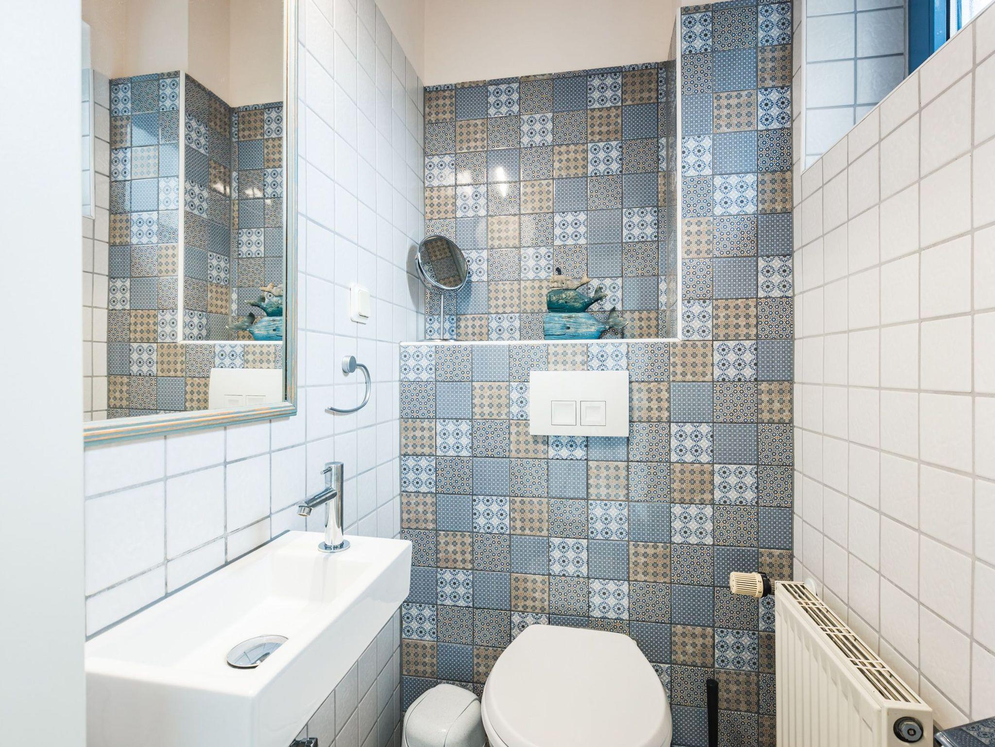 Das Badezimmer befindet sich ebenfalls im Erdgeschoss und ist mit einer Dusche ausgestattet. Das WC befindet sich separat direkt um die Ecke.