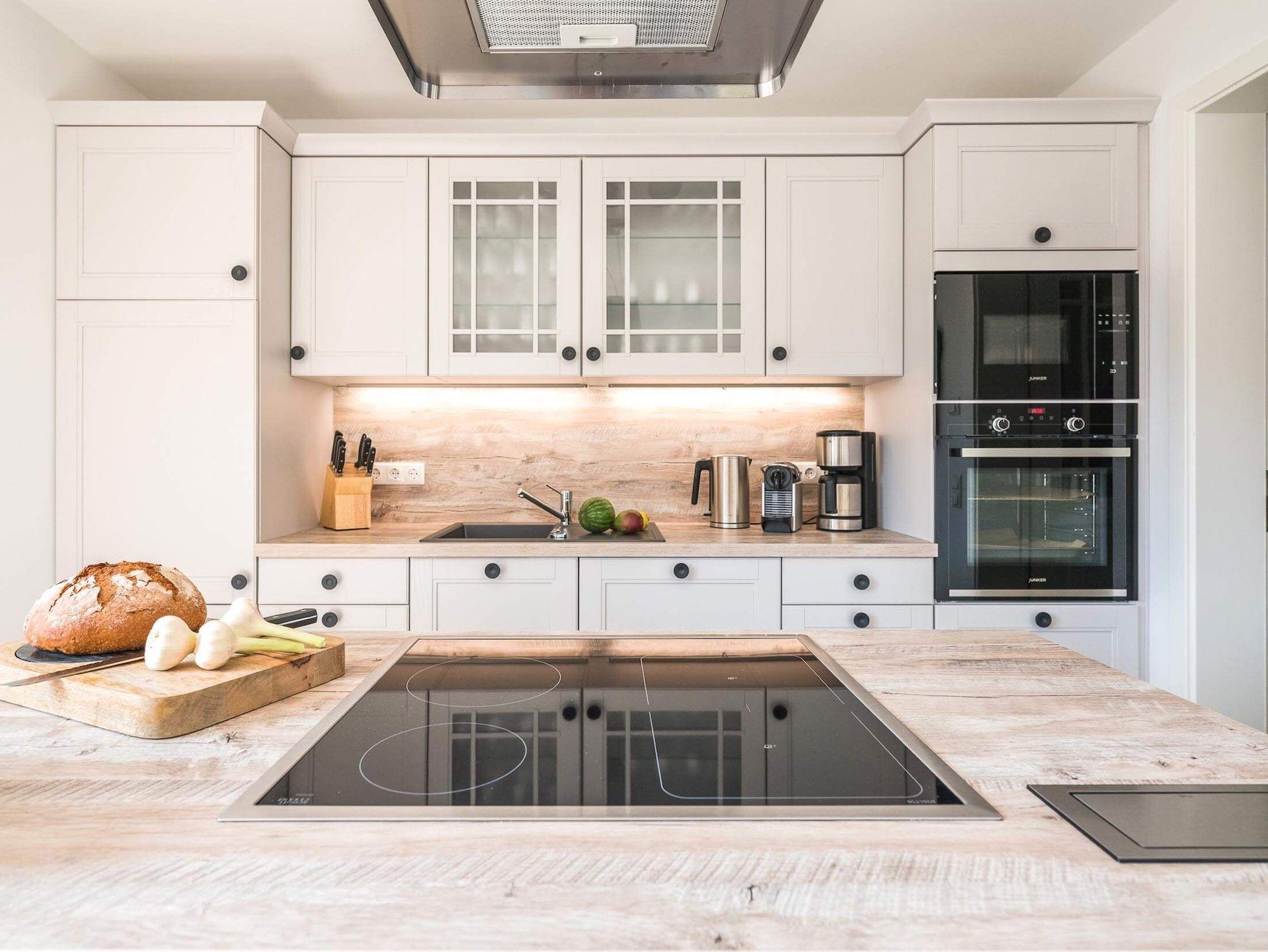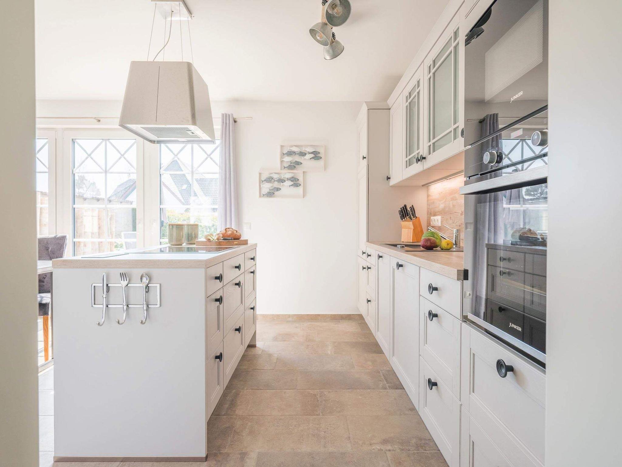 Es ist detailverliebt und mit viel maritimem Charme, eingerichtet. Der geschützte und begrünte Außenbereich steht für Sie zur Verfügung. Das Erdgeschoss gliedert sich in einen geräumigen Wohn- und Essbereich mit angrenzender, offener Küche. Eine vielseitig nutzbare Kochinsel lädt zum gemeinsamen Kochen ein und trennt den ausgedehnten Raum in gemütliche Bereiche. Alle Annehmlichkeiten des modernen Lifestyles, von Herd über Mikrowelle und Spülmaschine bis hin zu Kühlschrank mit Gefrierfach sind vorhanden. Ein großer Kamin wärmt an kalten Tagen und sorgt für eine romantische Stimmung. Das geschmackvoll ausgestattete Badezimmer mit Dusche und einer anliegenden Sauna bieten ein Flair zum Wohlfühlen.