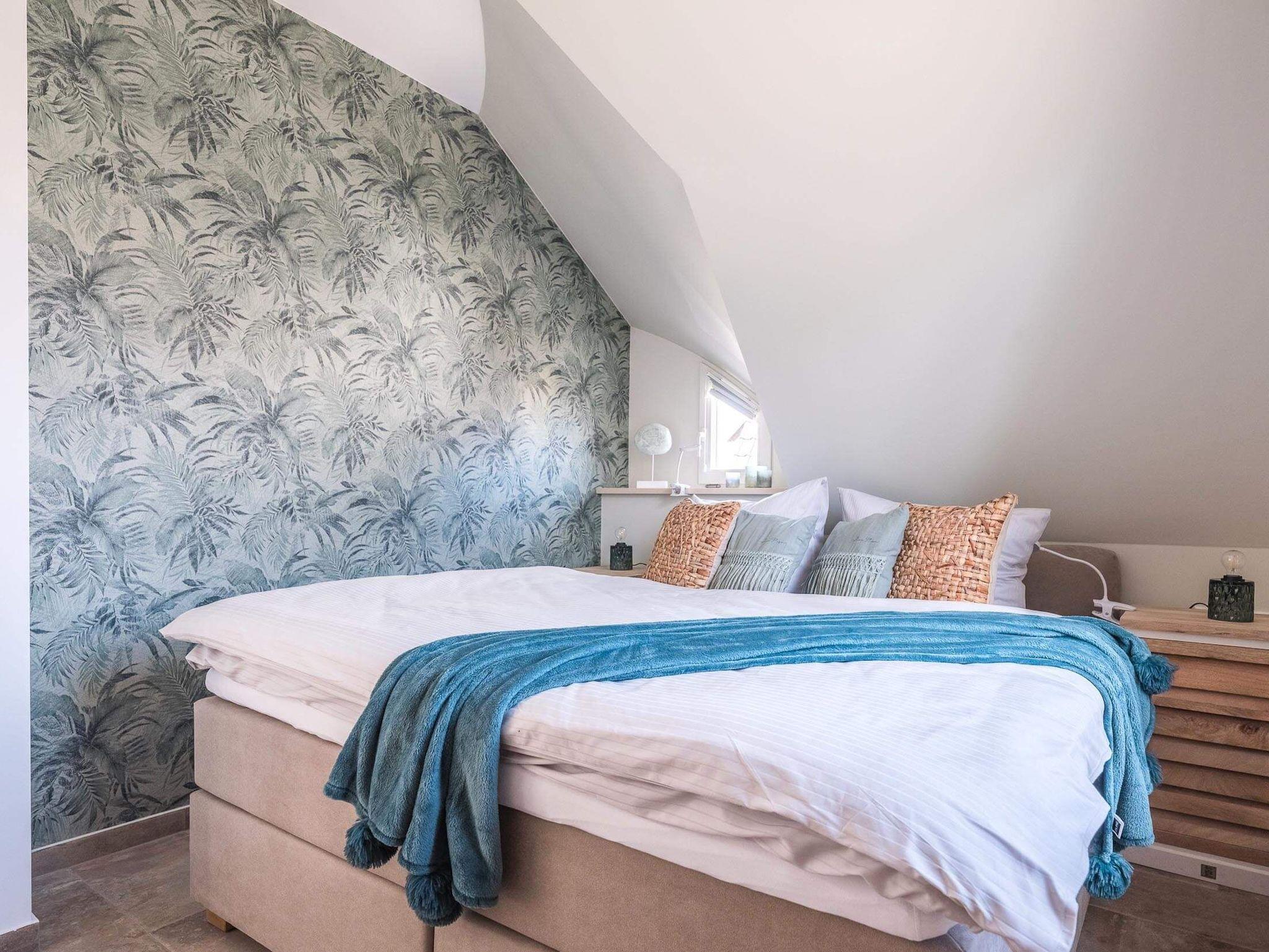 Im Obergeschoss sind die drei anheimelnden Schlafzimmer mit Boxspringbetten und Flatscreen TV Ihr Entspannungsbereich des behaglichen Hauses. Hier befindet sich ein großes Badezimmer mit geräumiger Dusche und WC.