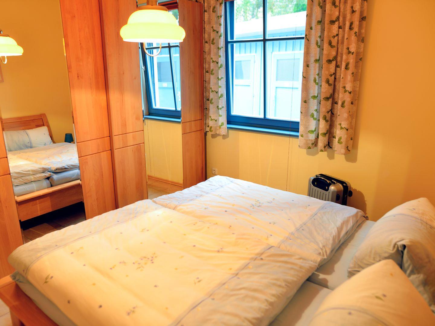 Die Erdgeschosswohnung mit Ihren 48 m² für 2 Personen verfügt über eine offene Küche, Wohn- und Schlafzimmer mit Massivholzmöbeln sowie ein Bad mit WC und Dusche.