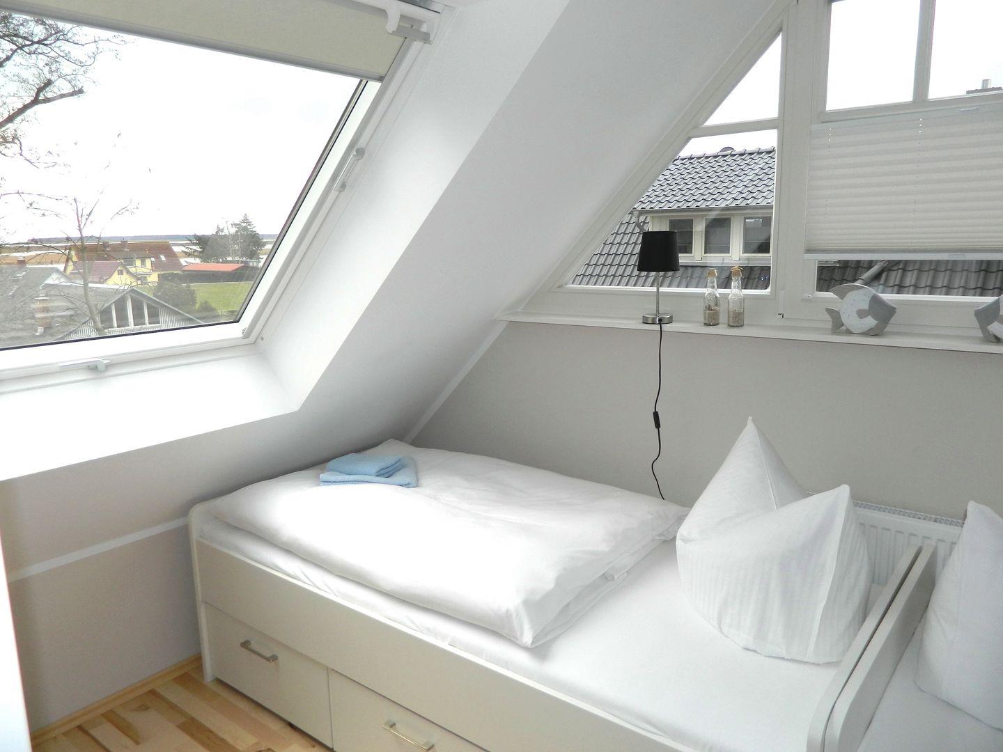 Ganz oben unter dem Dach befindet sich ein weiteres Schlafzimmer mit zwei Einzelbetten.