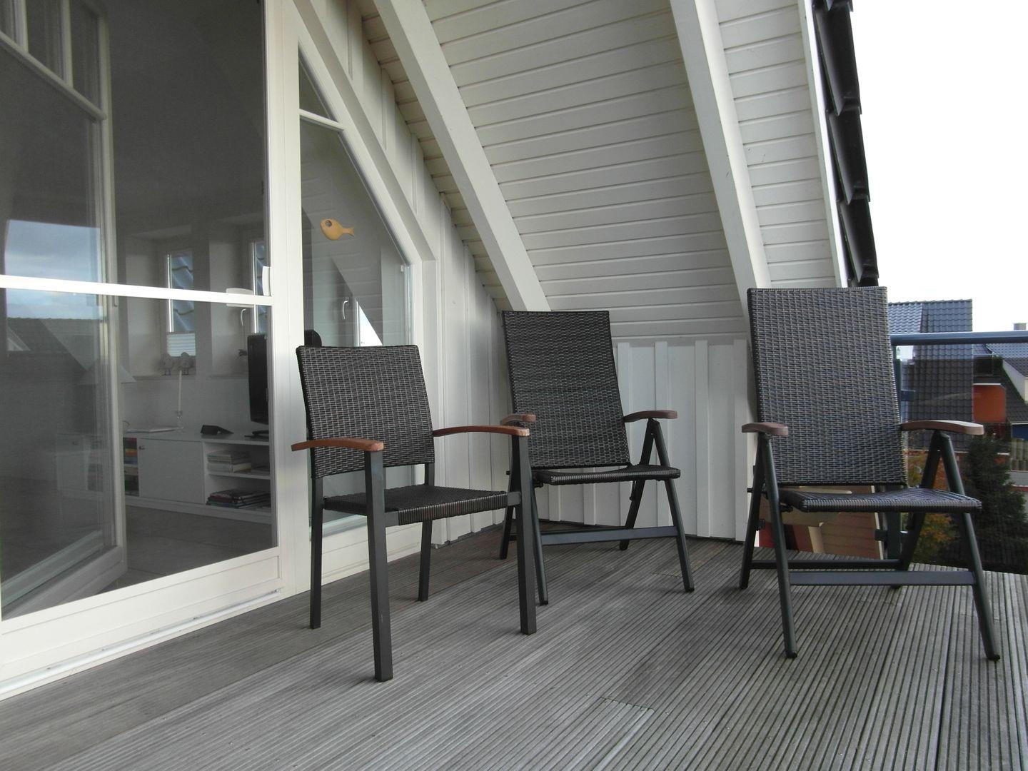 Ein separater Aufgang in der Wohnung führt direkt ins lichtdurchflutete "Sonnendeck". Ob morgens oder abends auf dem 12m² großen Balkon/Loggia lassen sich die Zingster Sonnentage wunderbar genießen.