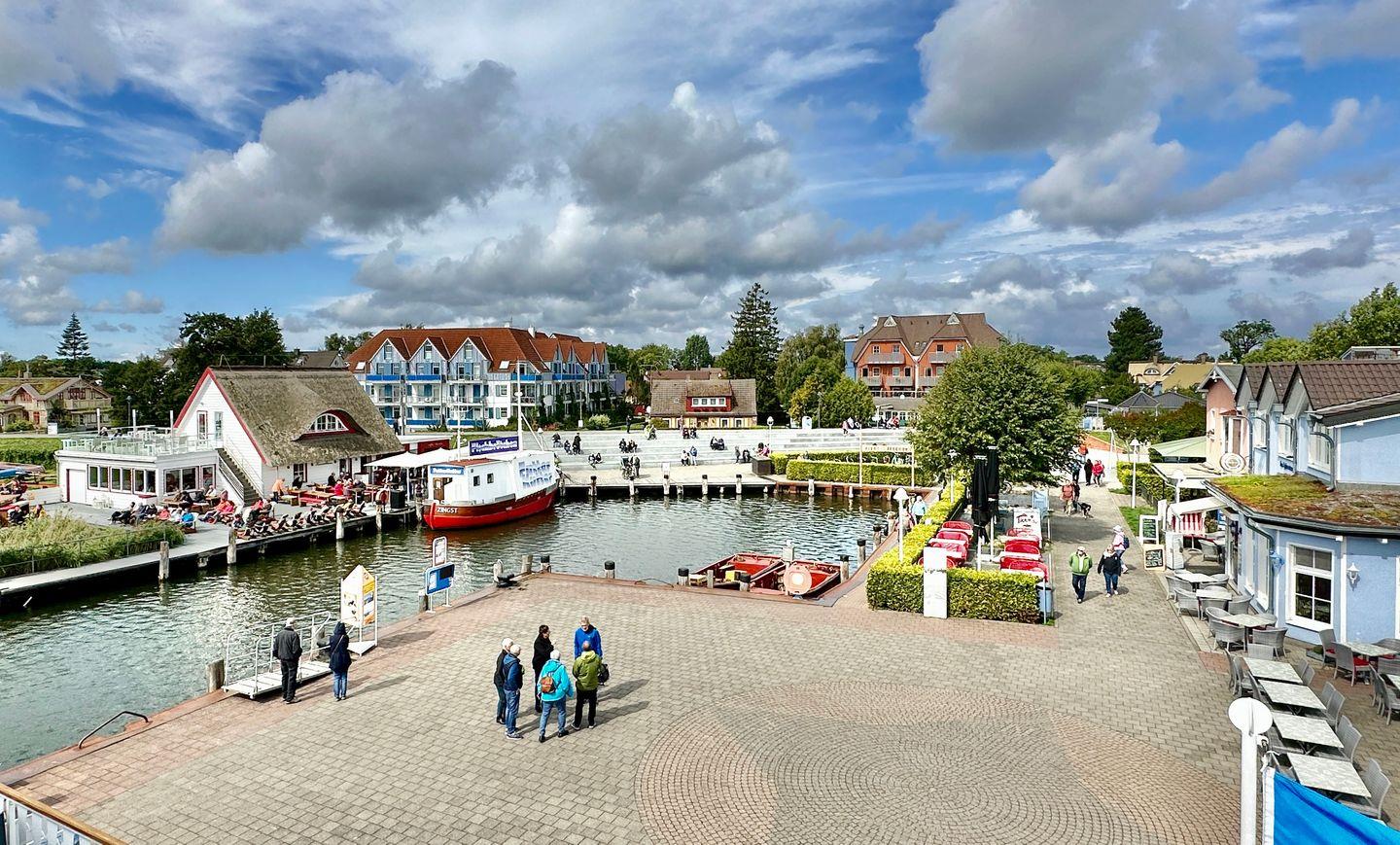 Der Hafen bietet viele Attraktionen - ob im Sommer die vielen Veranstaltungen, Konzerte und Feste oder auch im Frühjahr und Herbst den Vogelzug der Kraniche oder einfach auch nur ein leckeres Fischbrötchen im Liegestuhl – hier kann man Zingst genießen und sich wohlfühlen.