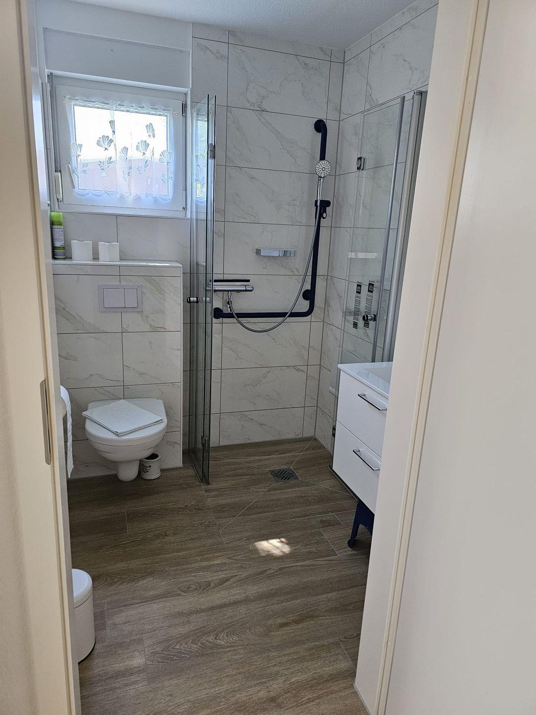 Diese Ferienwohnung mit einer Terrasse in Richtung Süden liegt im Erdgeschoss, ist ca. 50 m² groß und behindertenfreundlich eingerichtet.