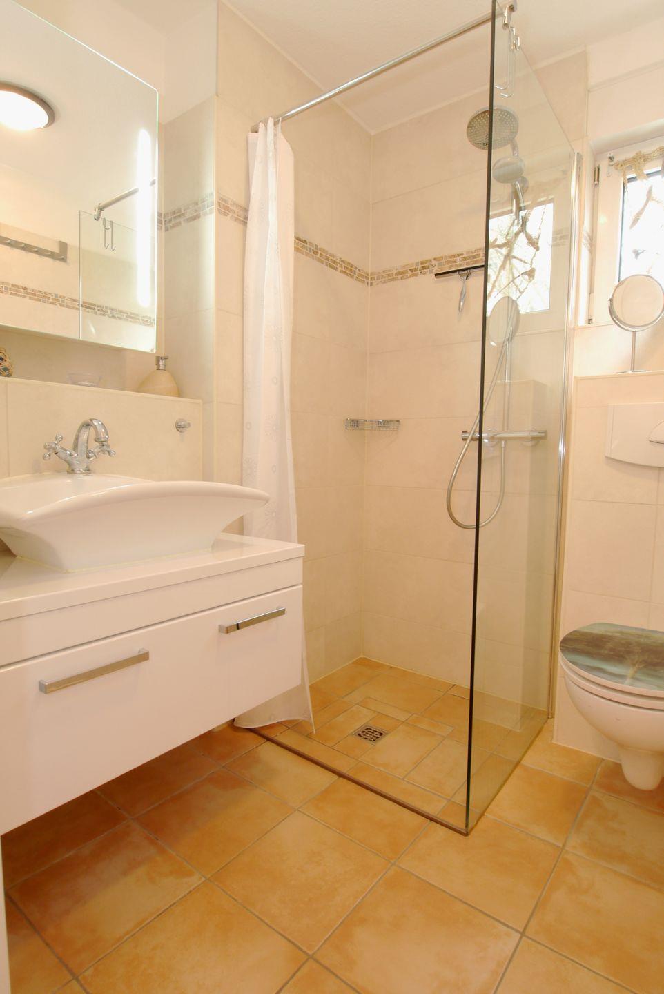 Diese Ferienwohnung mit einer Terrasse in Richtung Westen liegt im Erdgeschoss, ist ca. 50 m² groß und behindertenfreundlich eingerichtet.
