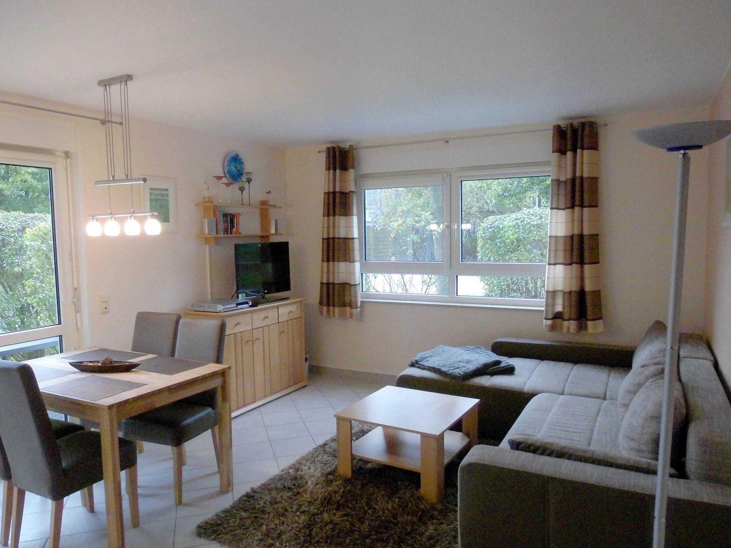 Diese Ferienwohnung mit einer Terrasse in Richtung Süden liegt im Erdgeschoss, ist ca. 50 m² groß und ist hell und freundlich eingerichtet.