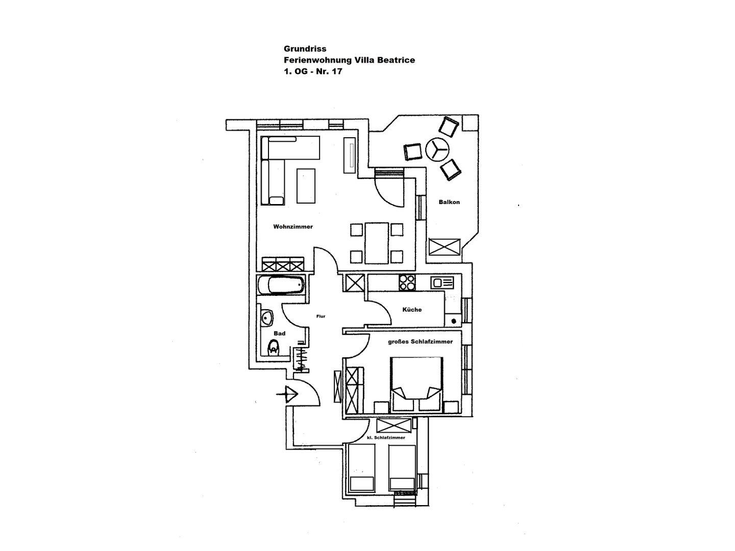 Besonders hervorzuheben ist der nach Süden ausgerichtete Balkon mit Strandkorb.