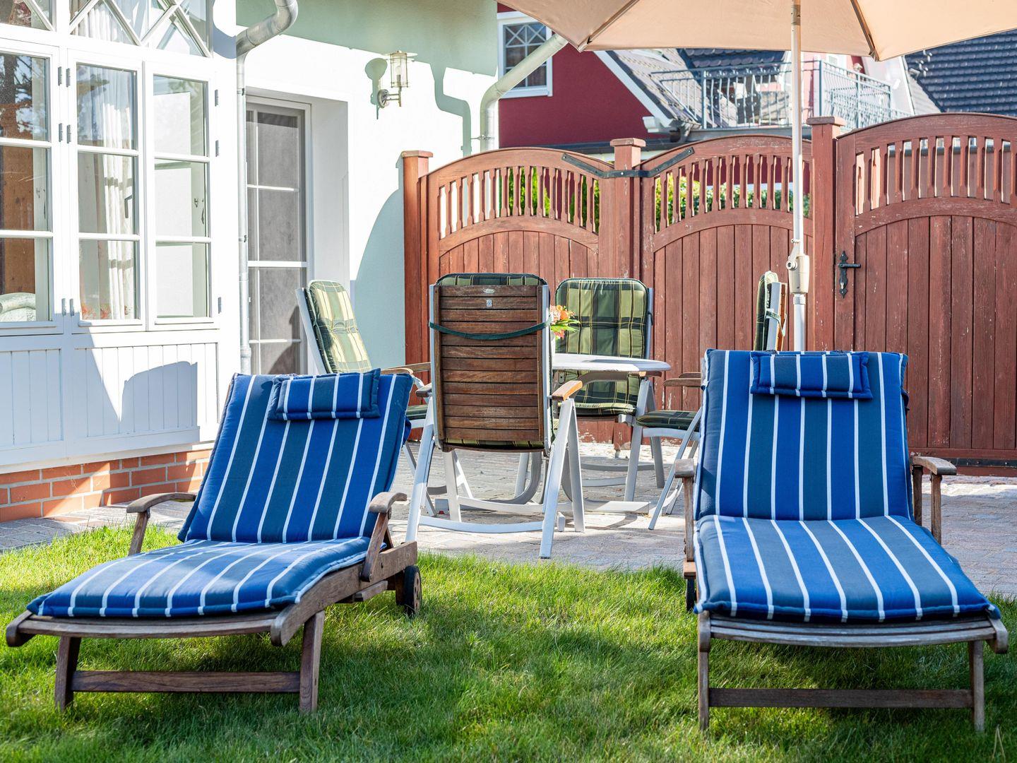 Besonders hervorzuheben ist die große Terrasse mit Gartenmöbeln, auf der Sie die frische Ostsee-Luft genießen und die Seele baumeln lassen können. Hier erwartet Sie auch ein schöner Gartenblick, ideal für entspannte Nachmittage mit einem guten Buch oder einem Glas Wein.