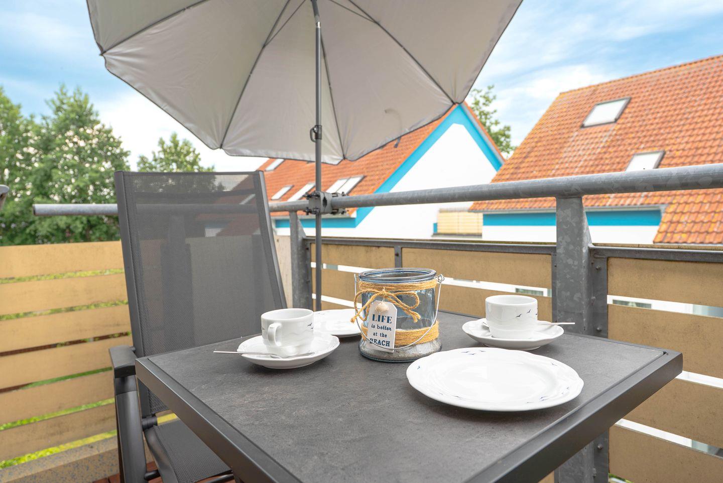 Ein weiteres Highlight der Wohnung ist der kleine Balkon, auf dem Sie die frische Seeluft genießen und den Blick auf die Umgebung schweifen lassen können. Für Familien mit Kindern ist die Residenz am Strand besonders gut geeignet, da eine Vielzahl an Freizeitmöglichkeiten in der Nähe vorhanden sind. Spielen Sie Beachvolleyball, genießen Sie eine Radtour entlang der Küste oder erkunden Sie die Umgebung beim Wandern oder Joggen.