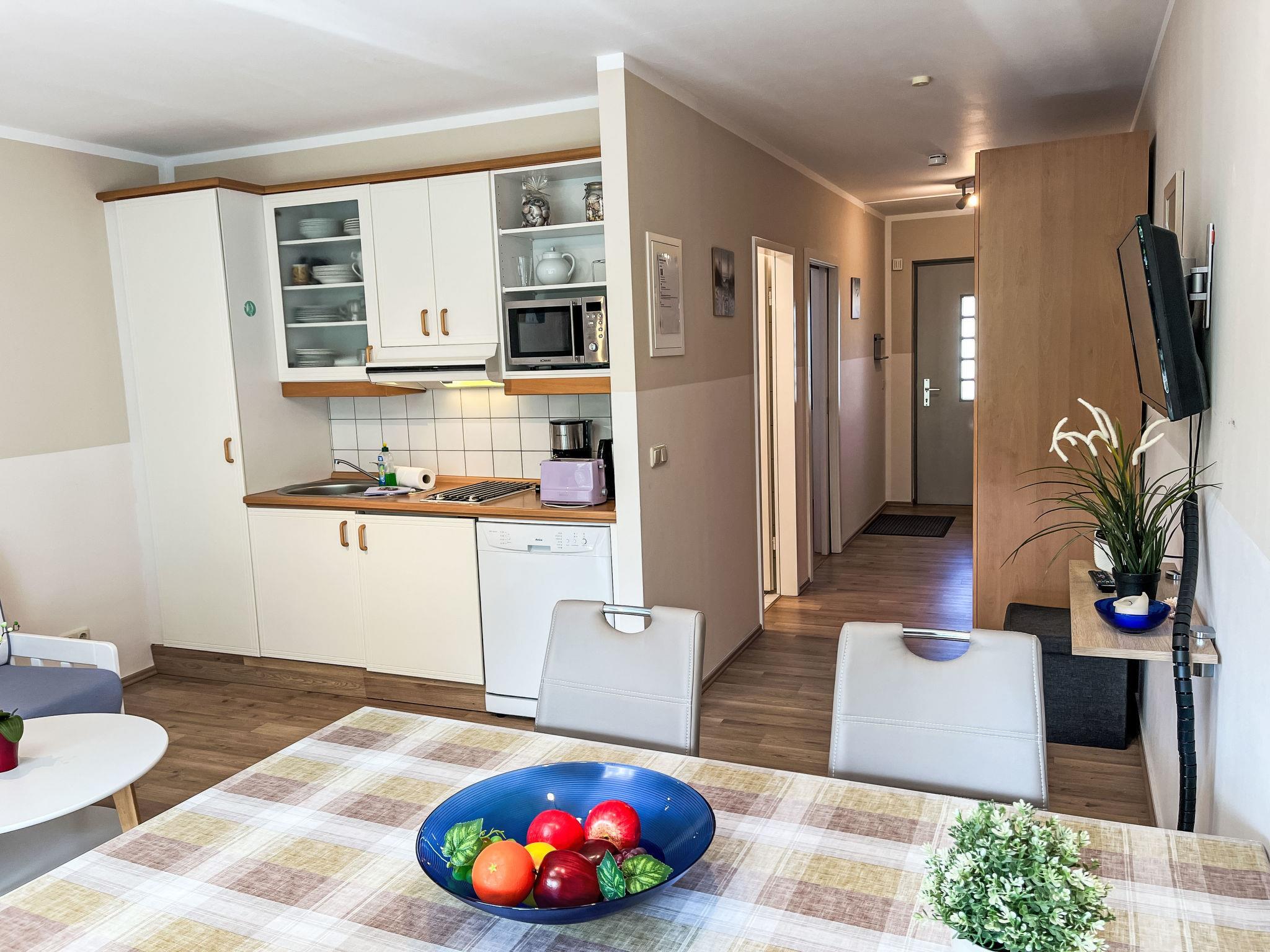 "Parkresidenz Sanssoucis (App. 17)", 2-room apartment 47 m2 on 1st floor. Cosy furnishings: living/dining room with 1 sofabed and cable TV (flat screen), radio. Exit to the balcony. 1 room with 1 double bed. Kitchenette (dishwasher, 2 ceramic glass hob hotplates, toaster, kettle, microwave, electric coffee machine). Bath/WC. Balcony. Balcony furniture. Facilities: Internet (WiFi, free). Parking (1 car) at the house. Please note: non-smokers only. Smoke alarm.