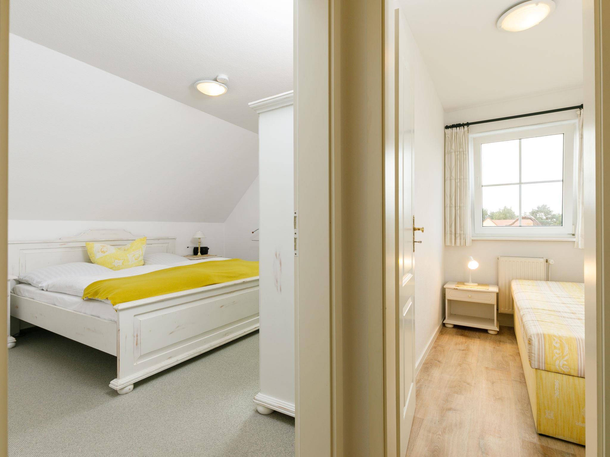 "Eickhus Weisse Wohnung", 3-room apartment 55 m2 on 1st floor. Bright, partly with sloping ceilings, comfortable and cosy furnishings: living/dining room with satellite TV (flat screen), radio. Exit to the balcony. 1 room with 1 double bed (180 cm, length 200 cm). 1 room with 1 bed (80 cm, length 200 cm). Open kitchen (4 hot plates, oven, toaster, kettle, electric coffee machine). Shower/WC. Natural stone floors, carpet. Balcony. Balcony furniture. Facilities: Internet (WiFi, free). Parking. Please note: non-smokers only. Smoke alarm. E-bikes can be charged free of charge in the bicycle room.