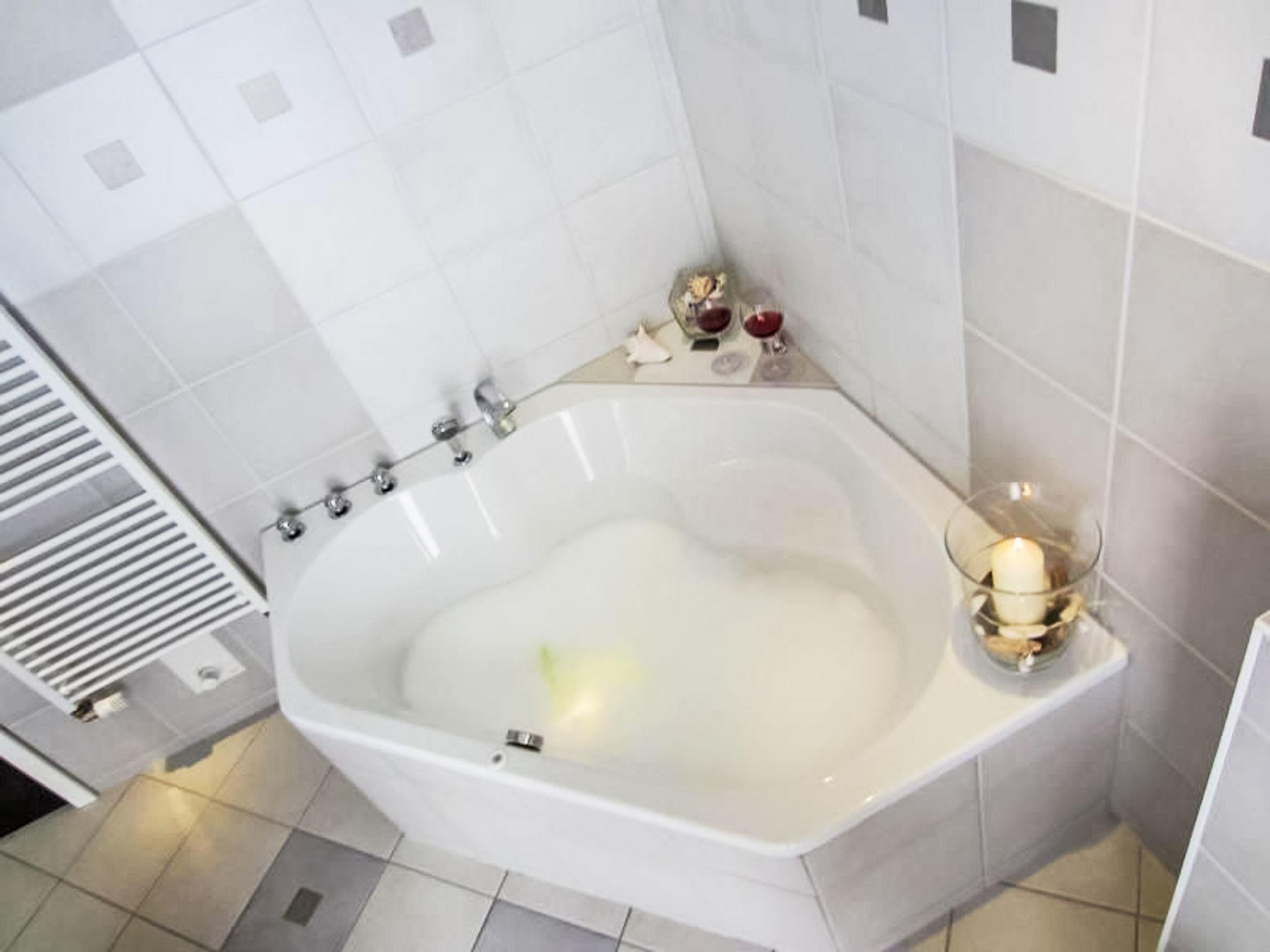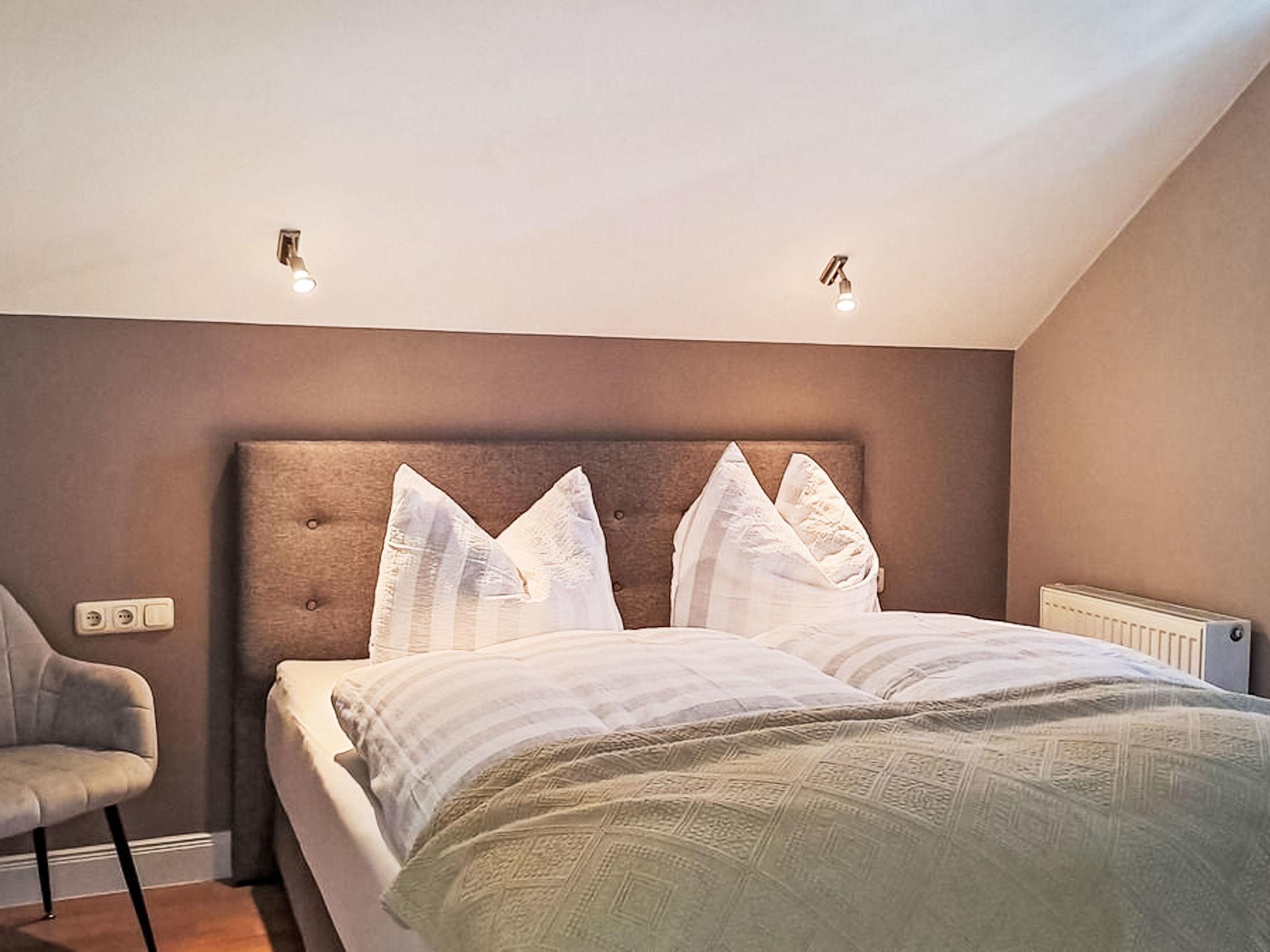 The apartment comfortably spans 78 m² on the upper floor of a detached house and is equipped with everything to make your stay pleasant. Look forward to two cosy double bedrooms that invite you to dream after an exciting day of exploration. The living area with integrated kitchen offers plenty of space for spending time together. Two bathrooms ensure that morning routines can be carried out without any waiting time. An infrared heat cabin (for a fee) and an illuminated bathtub, which promise relaxation of the highest standard, are testament to the high-end facilities. Other amenities include a washing machine for your exclusive use, as well as a dishwasher, coffee machine and kettle.
