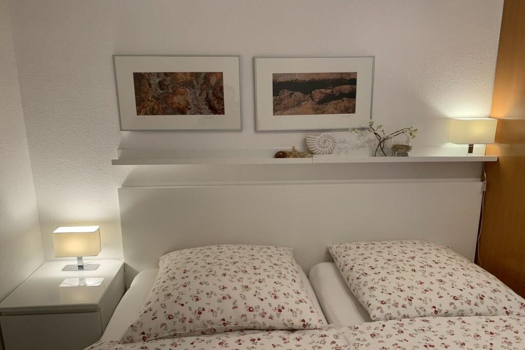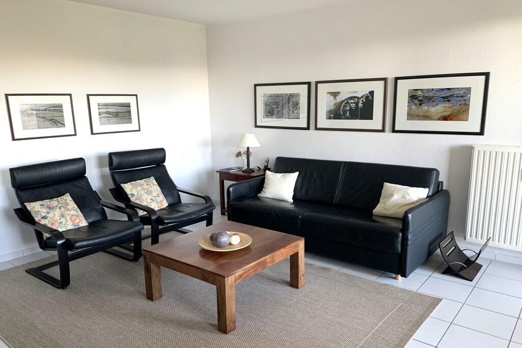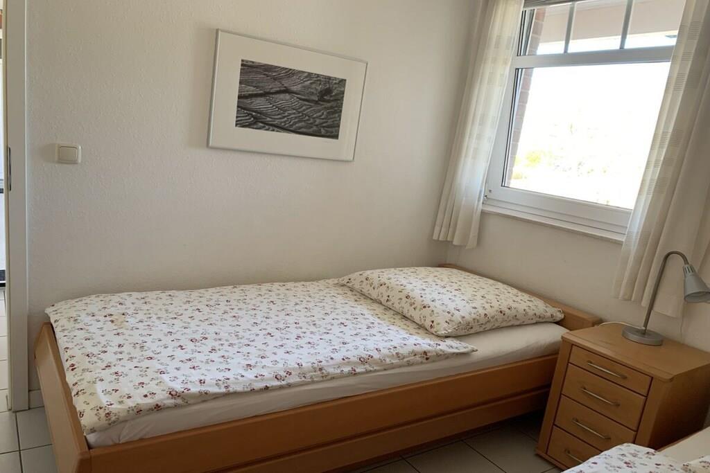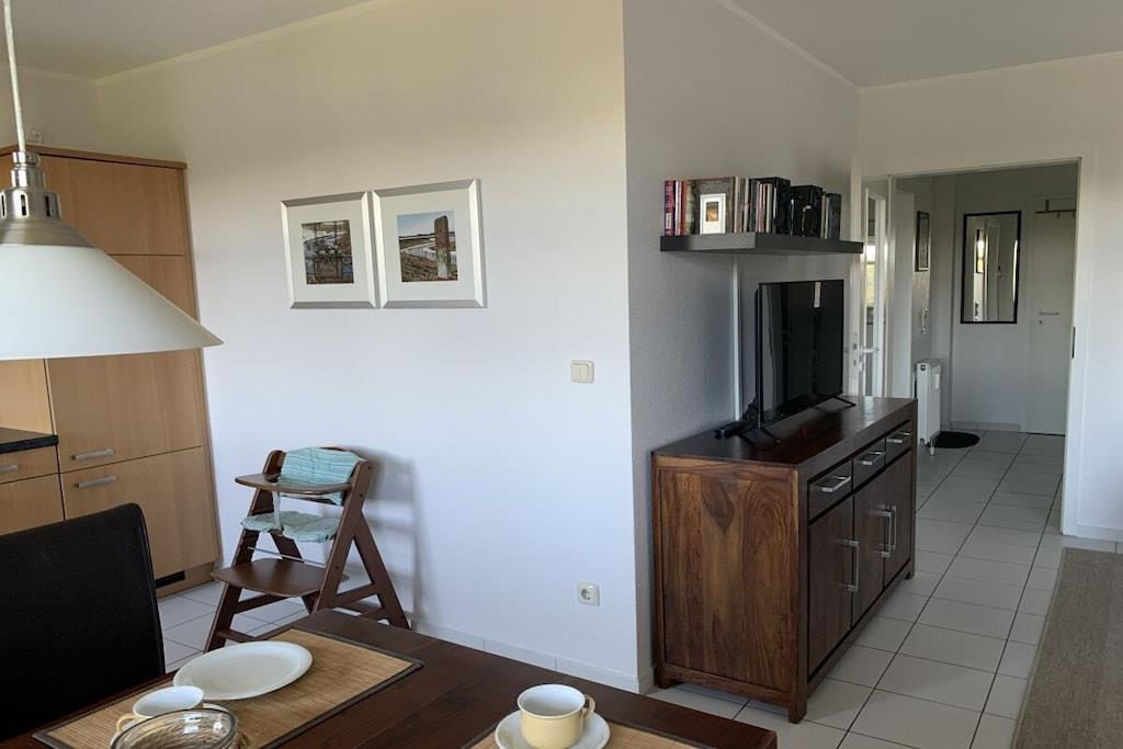 Die Wohnanlage Haus Roland besteht aus zwei Appartementhäusern auf einem großzügig geschnittenen Grundstück. Die helle Ferienwohnung im Obergeschoss lädt dazu ein, die Seele baumeln zu lassen. Sie verfügt über einen großen Wohnraum mit Essplatz und Küchenzeile. Er ist gemütlich mit einem Schlafsofa und bequemen Sesseln ausgestattet. Die Küchenzeile ist ausgestattet mit Cerankochfeld, Backofen, Mikrowelle, Kühlschrank mit Gefrierfach, Toaster, Kaffeemaschine, Wasserkocher und reichlich Geschirr. Ein kleines Hallenschwimmbad und eine Sauna ergänzen das Erholungsangebot der Anlage. Nutzbar für alle Gäste sind der Fahrradkeller, Tischtennisraum, Waschmaschine und Trockner. PKW-Stellplatz direkt vor dem Haus. Das Schwimmbad ist geöffnet. Ihr Fahrrad stellen Sie bequem und sicher in unserem neuen abschließbaren Fahrradhaus in Garten unter.