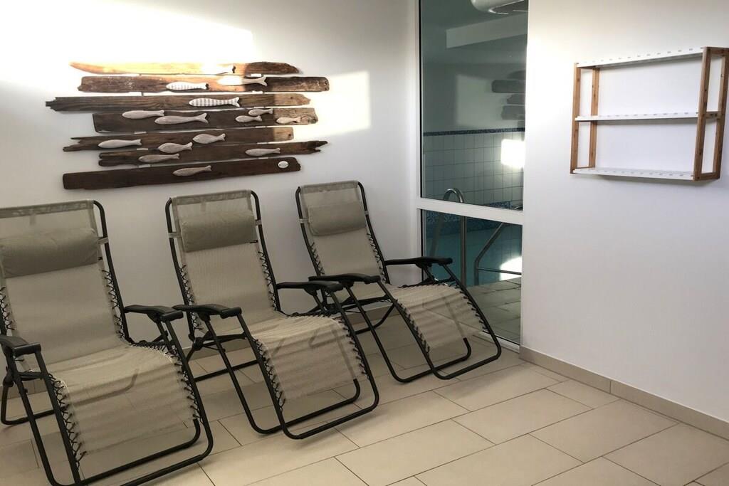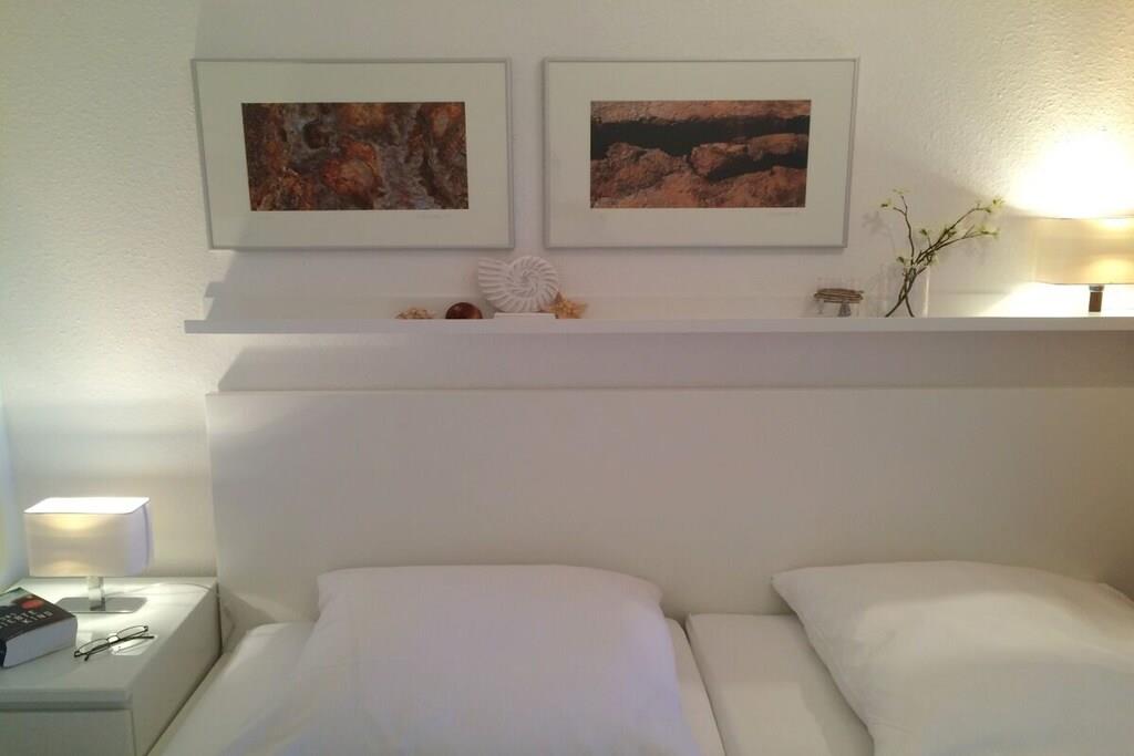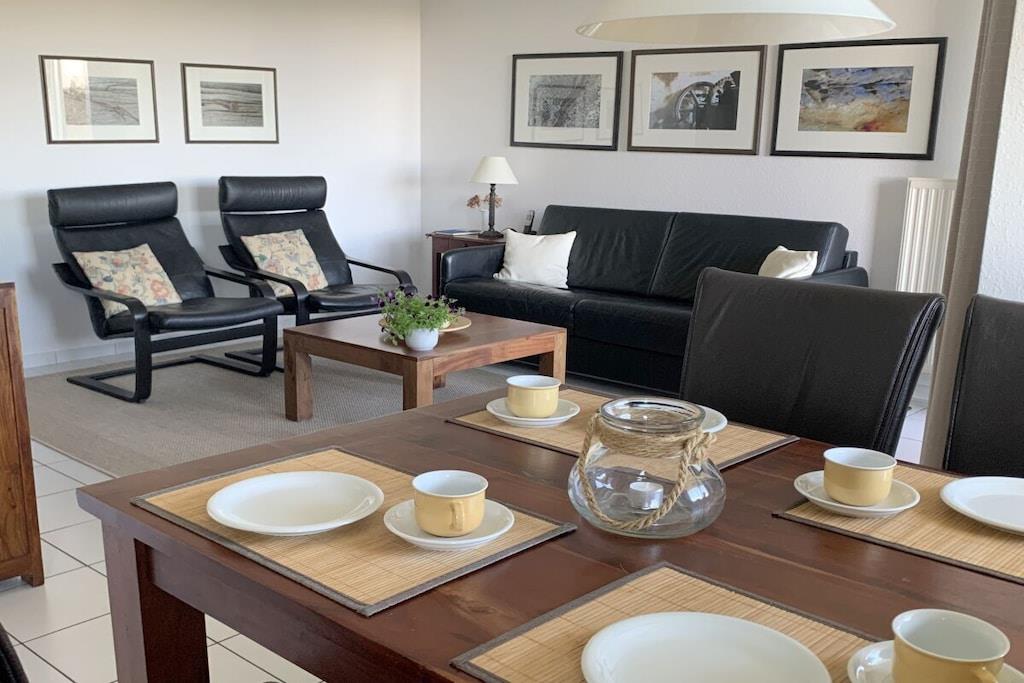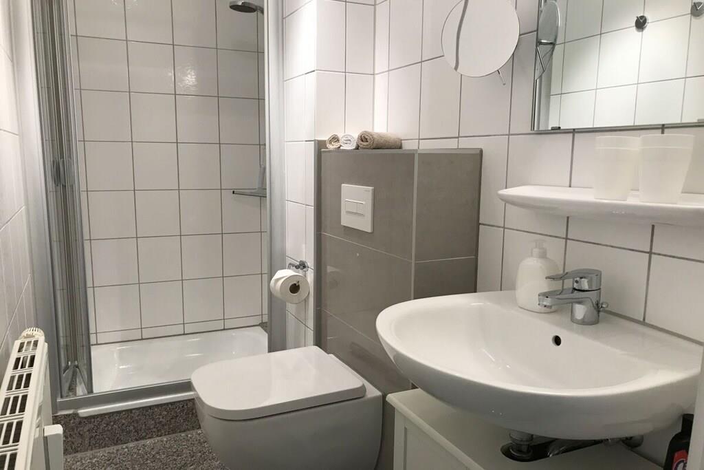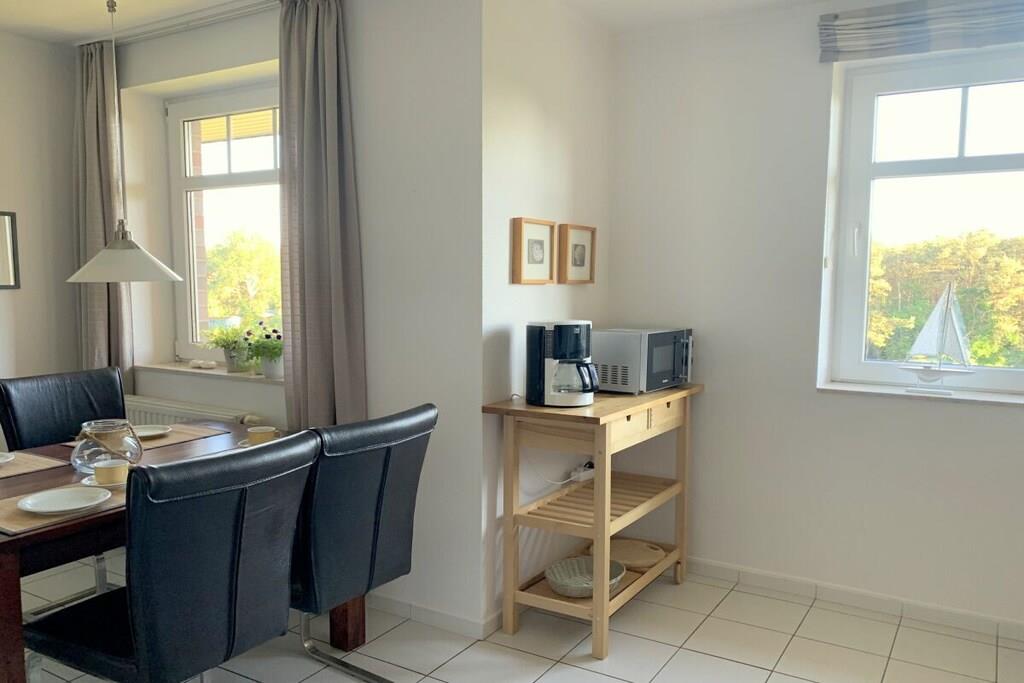 Die Wohnanlage Haus Roland besteht aus zwei Appartementhäusern auf einem großzügig geschnittenen Grundstück. Die helle Ferienwohnung im Obergeschoss lädt dazu ein, die Seele baumeln zu lassen. Sie verfügt über einen großen Wohnraum mit Essplatz und Küchenzeile. Er ist gemütlich mit einem Schlafsofa und bequemen Sesseln ausgestattet. Die Küchenzeile ist ausgestattet mit Cerankochfeld, Backofen, Mikrowelle, Kühlschrank mit Gefrierfach, Toaster, Kaffeemaschine, Wasserkocher und reichlich Geschirr. Ein kleines Hallenschwimmbad und eine Sauna ergänzen das Erholungsangebot der Anlage. Nutzbar für alle Gäste sind der Fahrradkeller, Tischtennisraum, Waschmaschine und Trockner. PKW-Stellplatz direkt vor dem Haus. Das Schwimmbad ist geöffnet. Ihr Fahrrad stellen Sie bequem und sicher in unserem neuen abschließbaren Fahrradhaus in Garten unter.