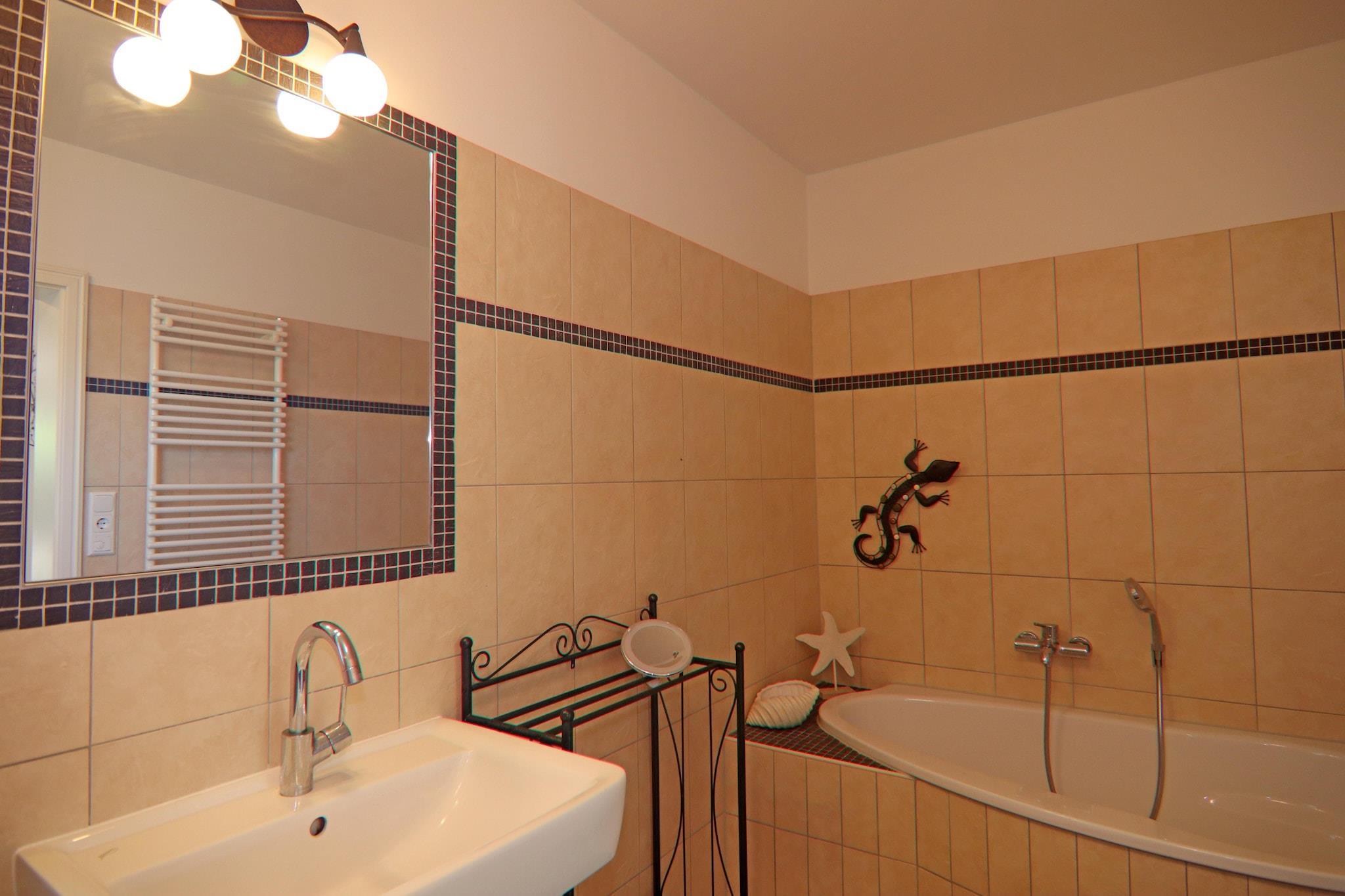 Thatched holiday home with comfortable furnishings and a view of the backwater just 200 meters away. The charming Baltic Sea resort of Zinnowitz is located on one of the narrowest parts of the island, which is shaped by the Baltic Sea and the backwaters. At the beginning of the 20th century, hotels and guesthouses were built here in the well-known spa architecture, which, together with the spacious promenade, create a beautiful picture and invite you to take a stroll in the evening. Highlights included: All consumption-based energy costs WLAN Activities nearby: The gently sloping sandy beach is a paradise for small shellfish seekers and water lovers, but sun-seeking older guests also feel at home here. If the sun stays away, simply visit the Bernsteintherme with its 850 m² seawater swimming area. Tip: a diving trip with the diving bell at the pier and excursions by ship on the Baltic Sea or the backwaters.