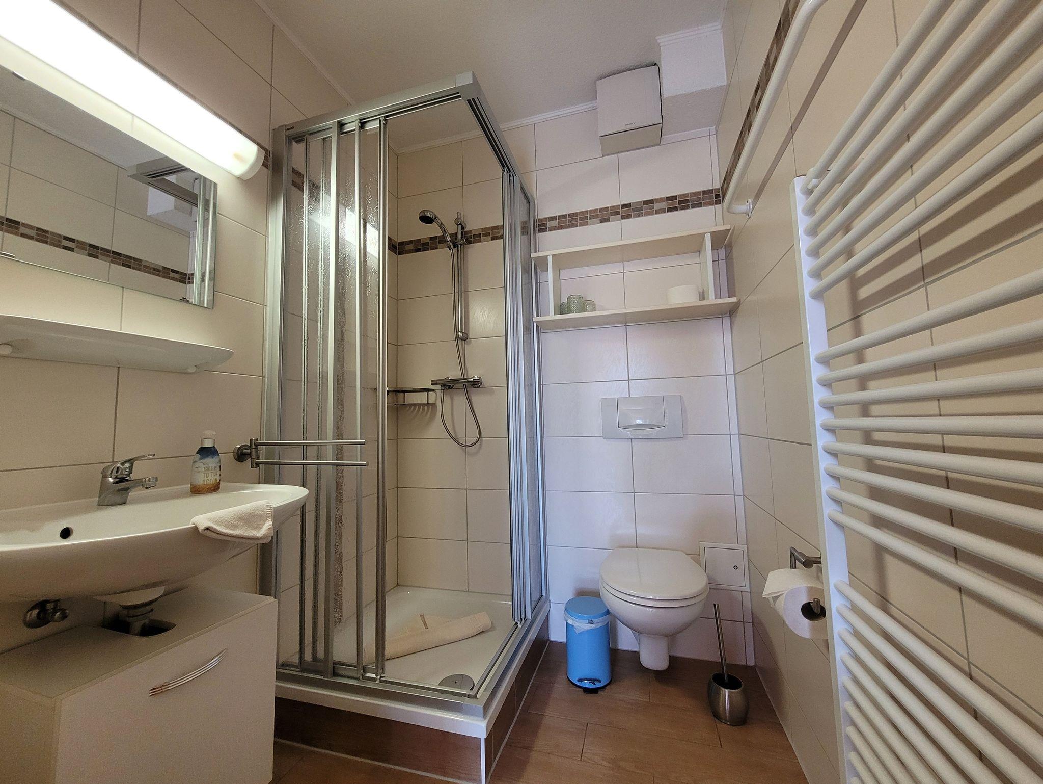 Die komplett eingerichtete Ferienwohnung mit Wohnzimmer, ein Schlafzimmer mit einem Ehebett und einem Einzelbett, Küchenzeile, Dusche, WC, Flur und großem Balkon/Terrasse würde für Sie bereitstehen. Zur Ausstattung gehören weiter Radio, Sat-Fernseher, einmalig Bettwäsche und Handtücher. In der Küchenzeile sind Mikrowelle, Kaffeemaschine und Toaster, Eier- und Wasserkocher sowie ein 2- Platten-Kocher, Kühlschrank und Geschirr vorhanden. Wir möchten Sie darauf hinweisen, dass es sich bei unseren Ferienwohnungen um Nichtraucherwohnungen handelt. Natürlich dürfen Sie auf dem Balkon oder der Terrasse rauchen. Die Waschmaschinen- und Trocknerbenutzung ist nach vorheriger Absprache möglich.
