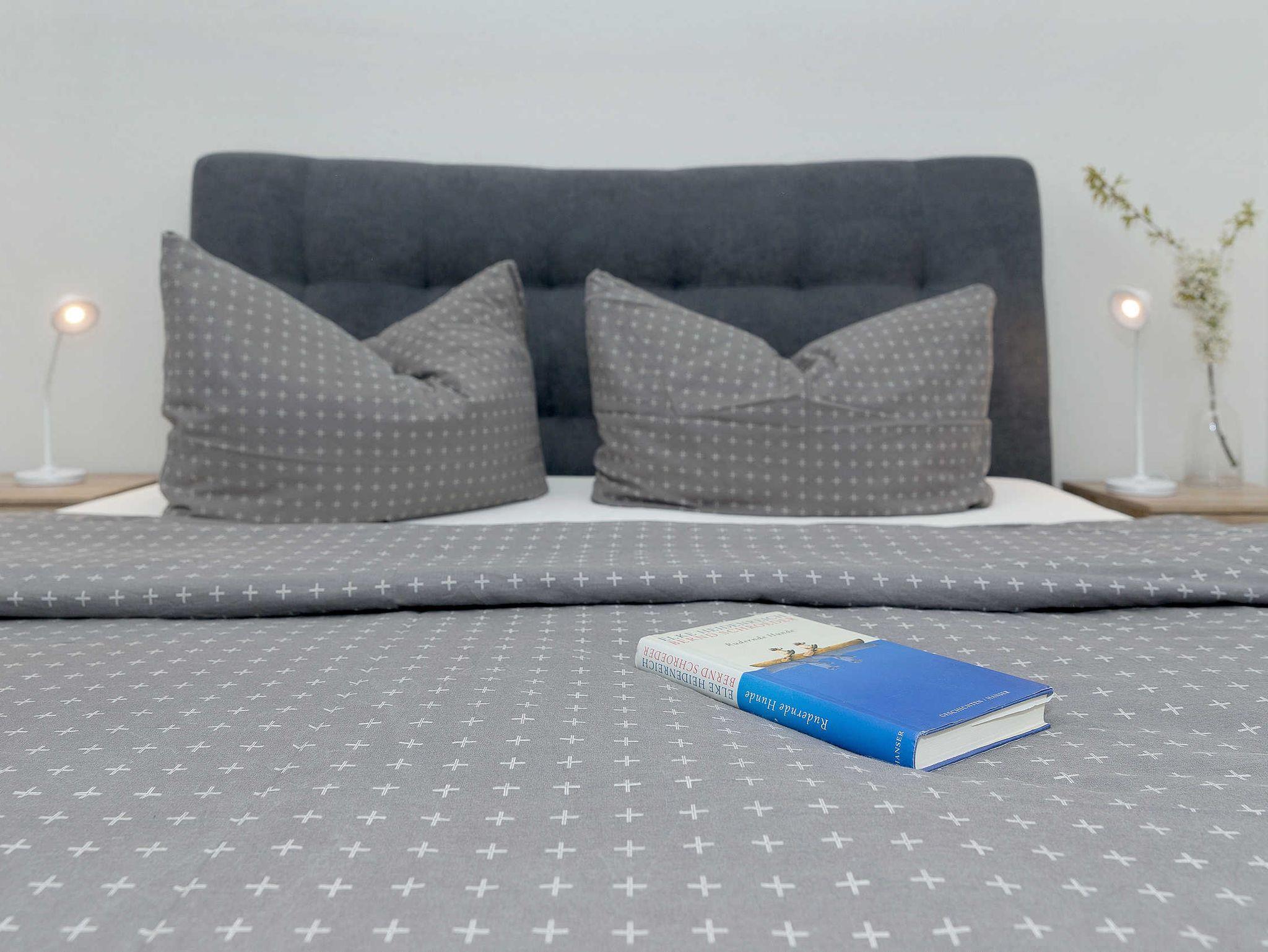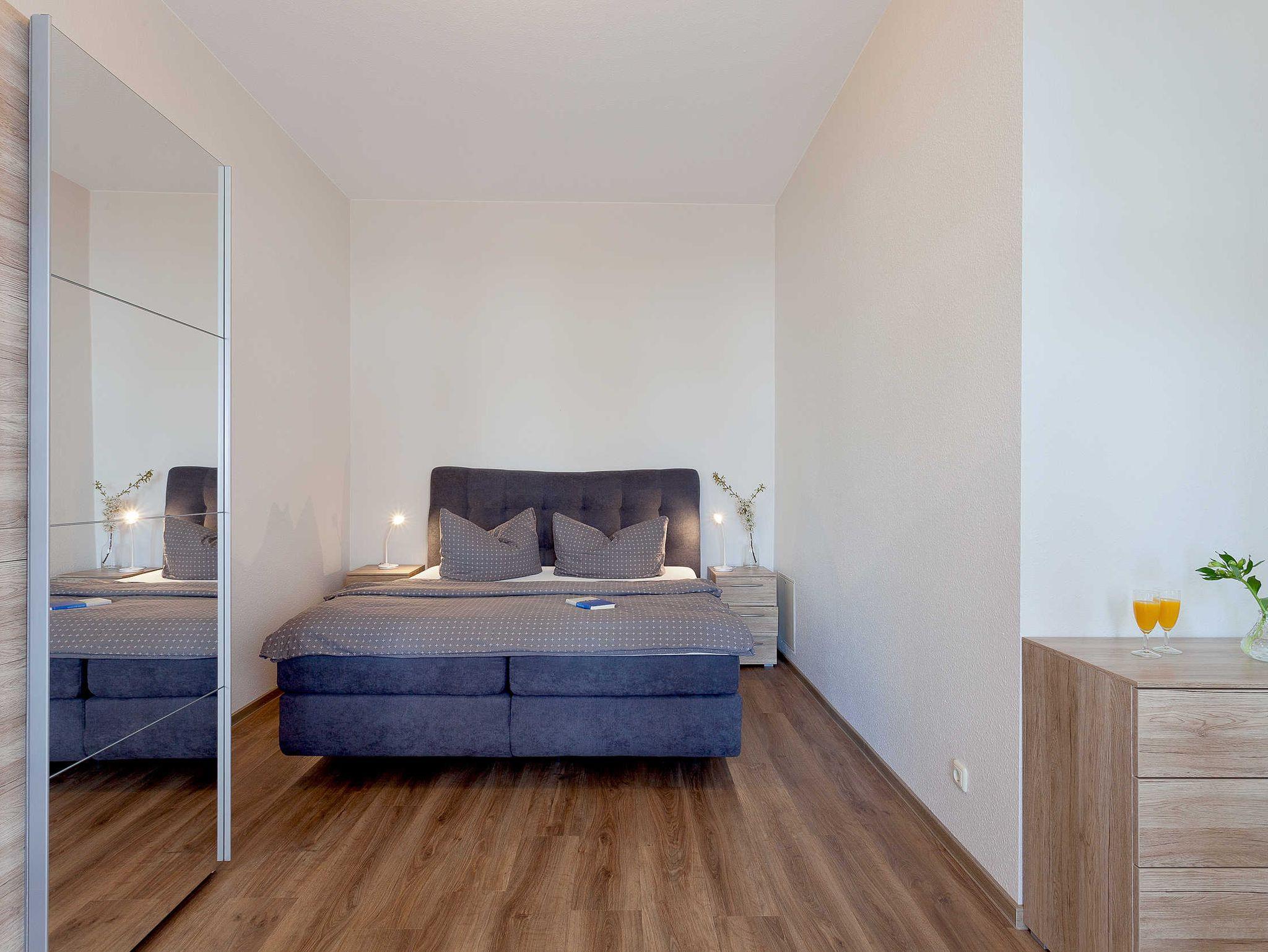 Die moderne Ferienwohnung befindet sich im 2. Obergeschoss und kann 2 bis 4 Personen beherbergen. Auf circa 41 m² befinden sich ein Wohn- und Schlafbereich mit einer Pantryküche, ein Bad mit Dusche und eine geschlossene Veranda.