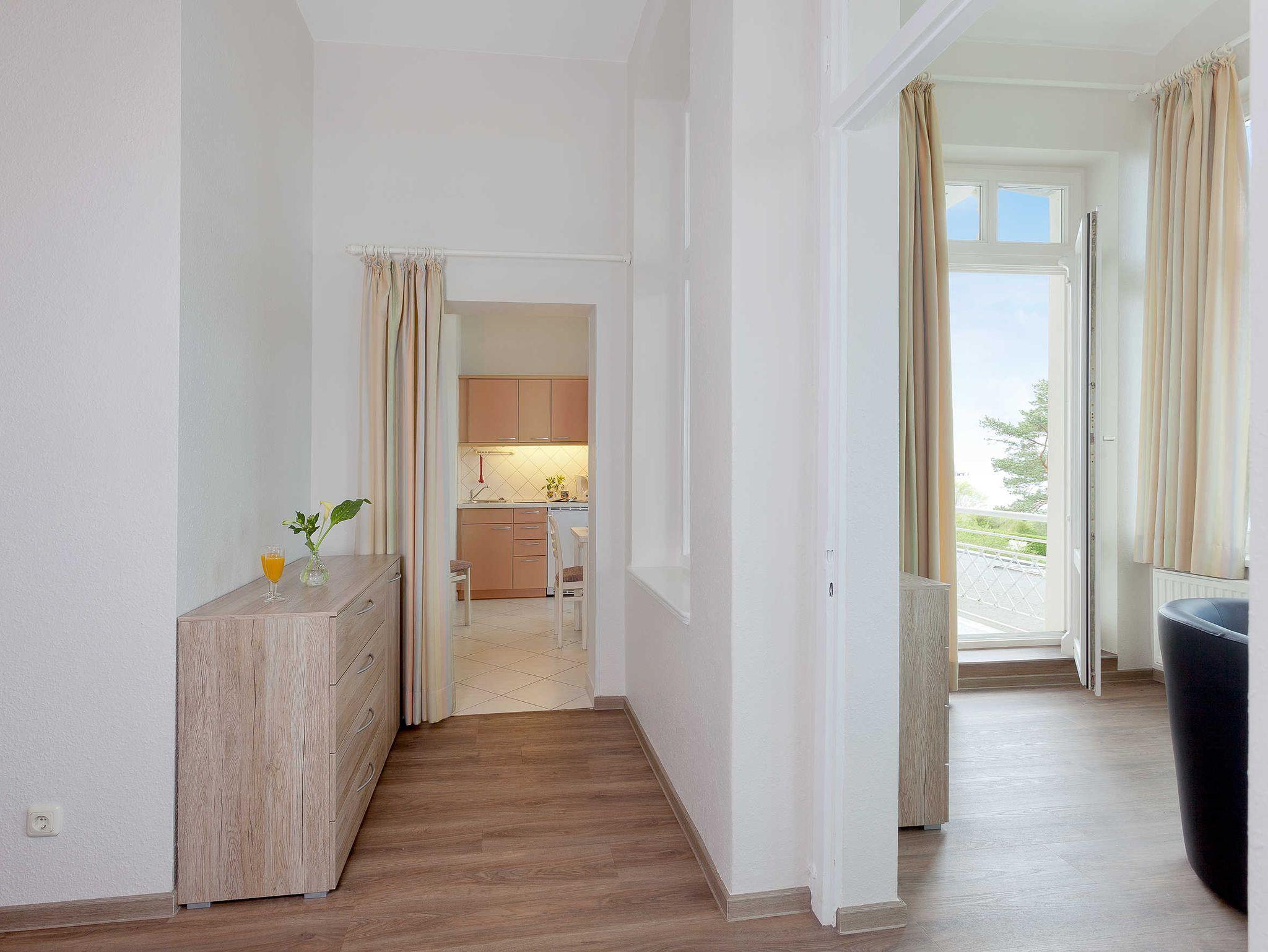 Das, in der Bäderarchitektur erbaute, Appartementhaus 'Zinnowitzer Hof' liegt direkt an der Strandpromenade von Zinnowitz. Zu Beginn des 20. Jahrhunderts entstanden Hotels und Pensionen in beeindruckender Architektur, die gemeinsam mit der großzügig angelegten Promenade ein einmaliges Bild ergeben. Mit weiteren Sehenswürdigkeiten wie der Seebrücke und der Tauchgondel aber auch mit dem Club-Kino sowie dem Theater die Blechbüchse bietet Zinnowitz einige Freizeitaktivitäten an. Doch auch Orte die in der Nähe haben vieles um einen spannenden Tag zu gestalten, so gibt es beispielsweise die Phänomenta in Peenemünde, Karls-Erlebnis Dorf in Koserow und Gullivers Welt in Pudagla. Durch die zahlreichen Freizeitmöglichkeiten ist Ihr Urlaubsaufenthalt schnell vorbei. Überzeugen Sie sich selbst und statten Sie Zinnowitz einen Besuch ab.
