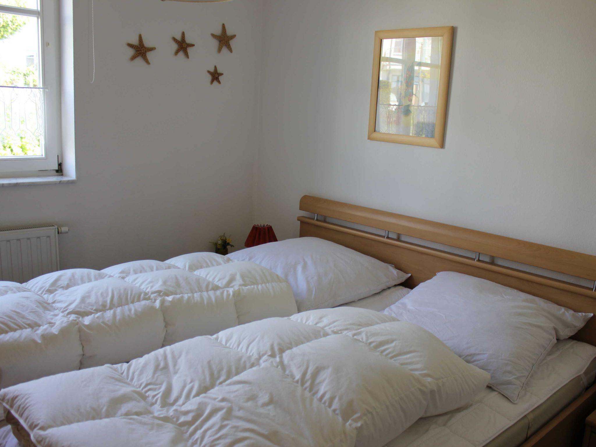 Schlafzimmer mit Doppelbett für 2 Personen; Wohnzimmer ein Schlafsofa für 2 Personen; Kinderbett kann gemietet werden.