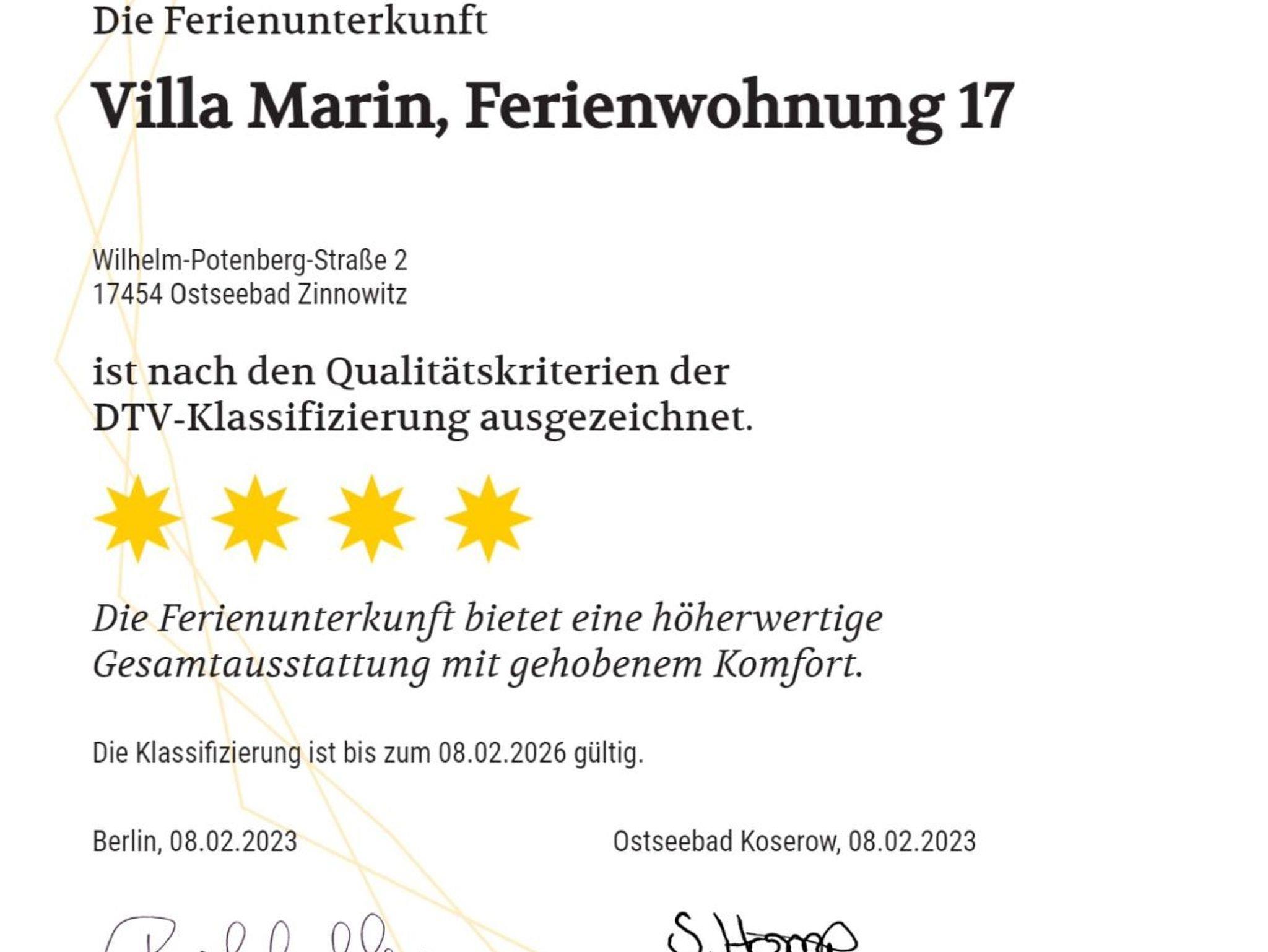 Die 62 m ² große und mit 4 DTV Sternen klassifizierte Ferienwohnung 17 befindet sich in der 1. Etage in der Villa Marin. Sie bietet mit ihren drei Zimmern ausreichend Platz für bis zu 6 Personen.