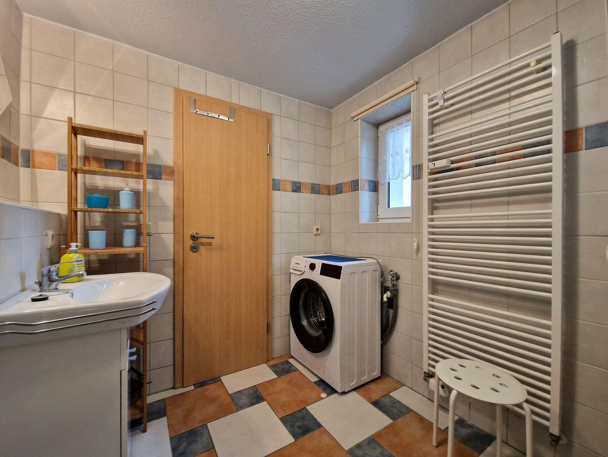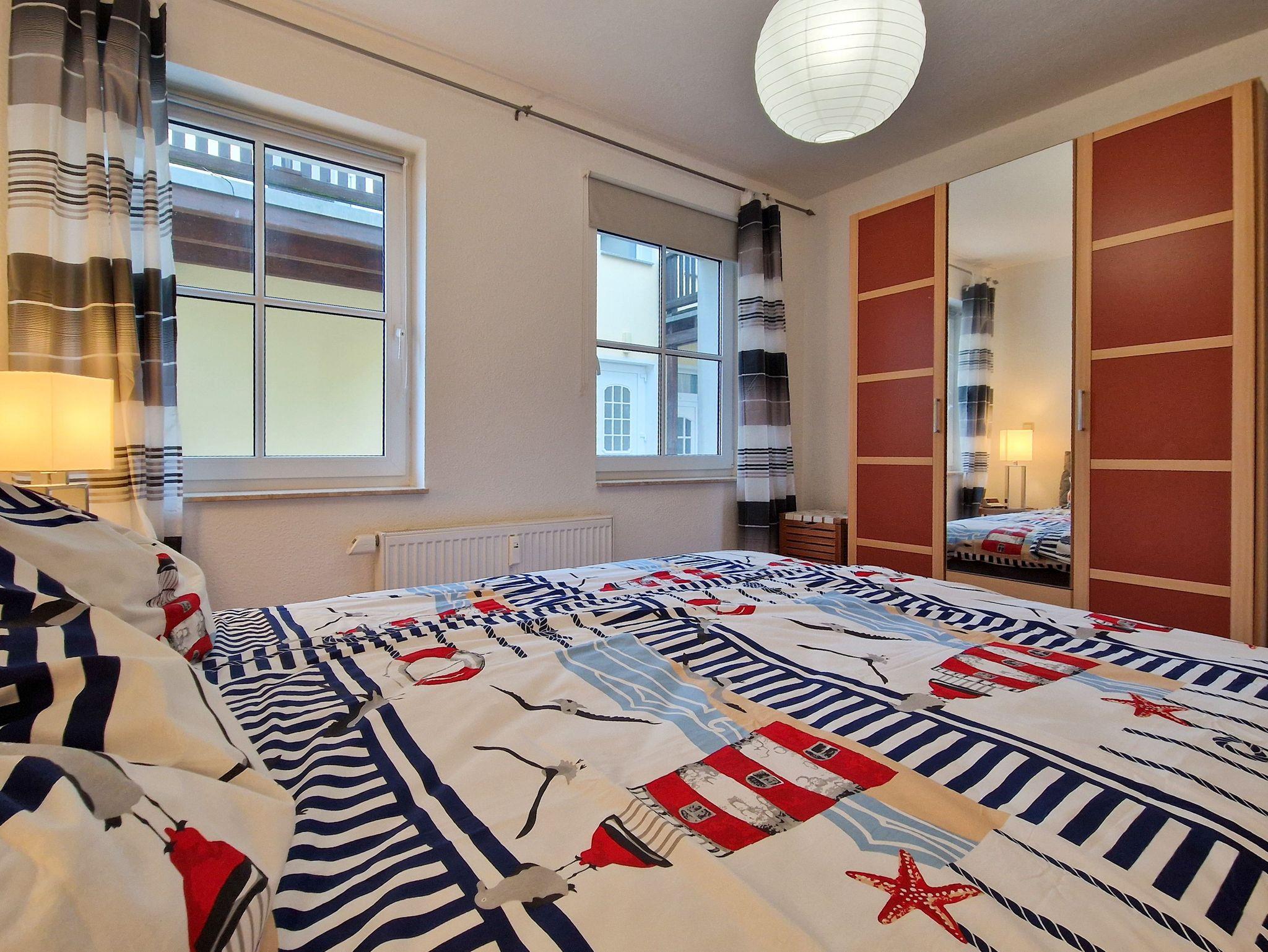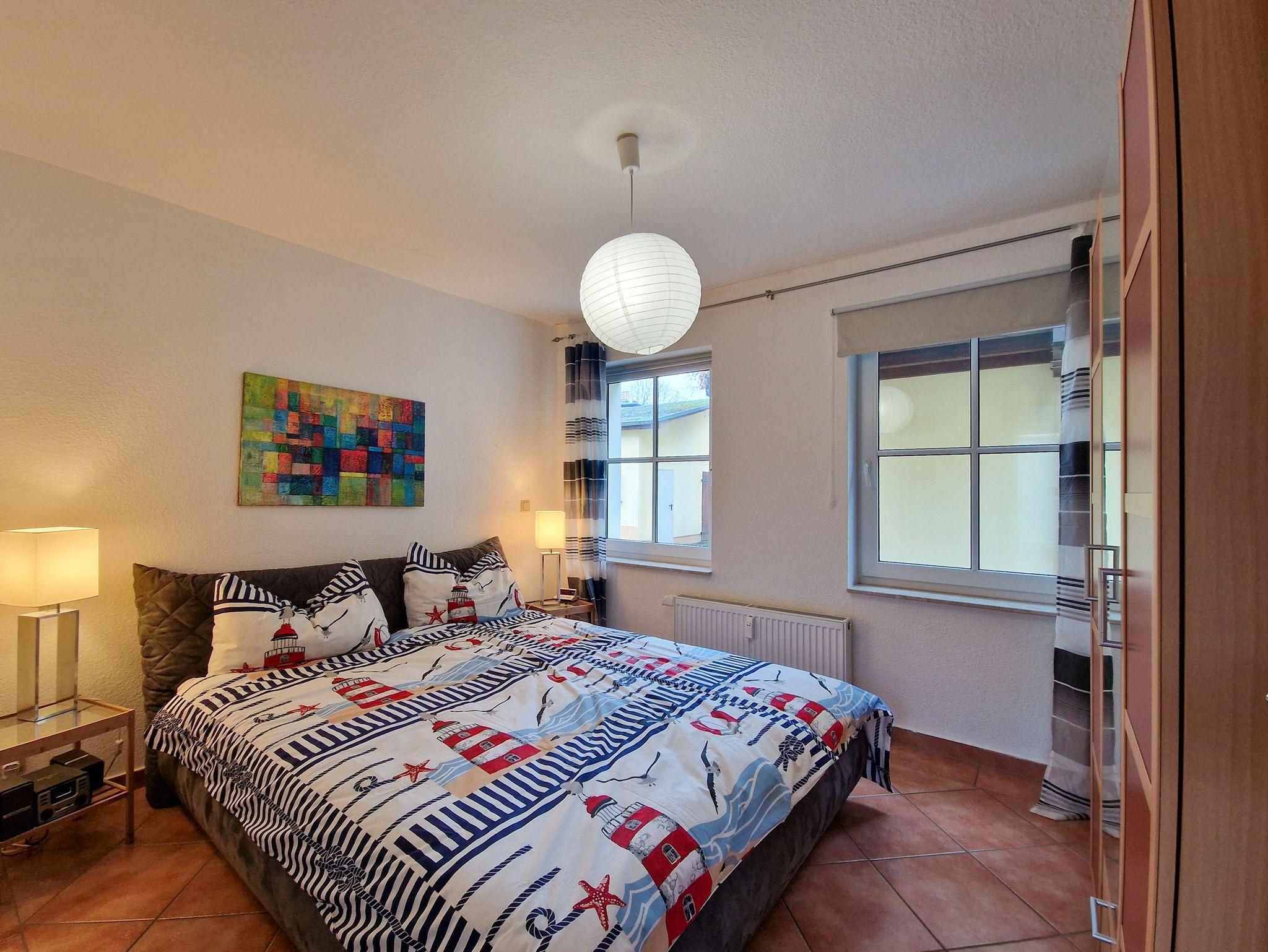 Das Schlafzimmer ist mit einem bequemen Doppelbett ausgestattet und bietet ausreichend Platz für Ihre Garderobe, einschließlich Bügeln. Im Badezimmer finden Sie eine Badewanne, ein WC, ein Waschbecken, eine Waschmaschine sowie einen Föhn. Durch das Außenfenster kann das Bad immer gut belüftet werden.