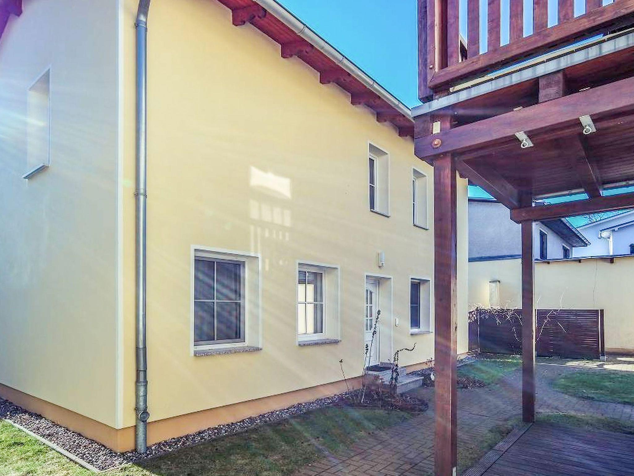 Genießen Sie die sonnige Südlage im überdachten Atrium, das mit gemütlichen Gartenmöbeln ausgestattet ist. Die angrenzende Rasenfläche steht Ihnen ganz privat zur Verfügung und lädt zum Entspannen ein.
