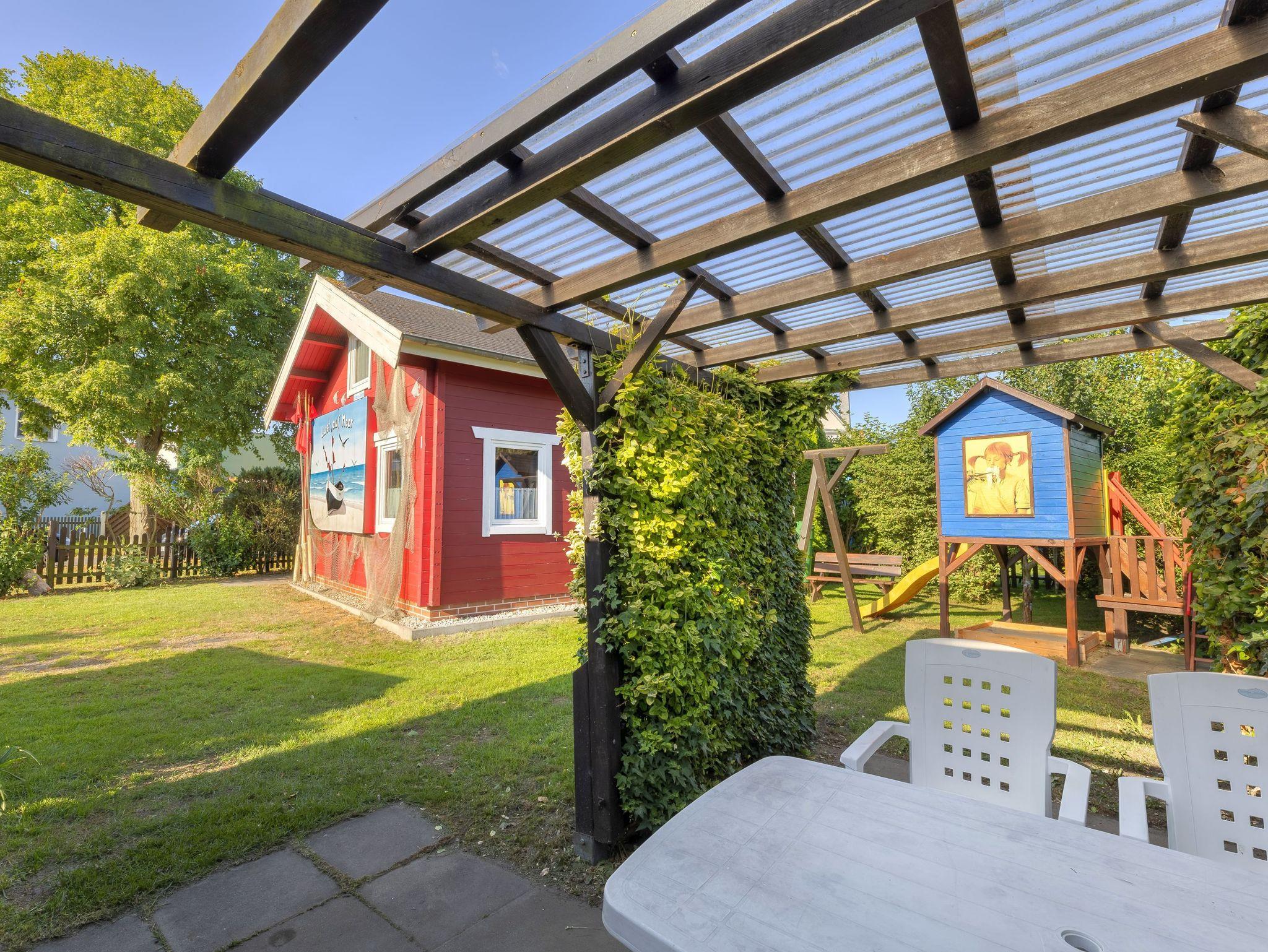 Im Dachgeschoss finden Kinder ihr kleines Paradies mit niedrigen Decken, Spielzeug und Platz für eigene Abenteuer. Der Außenbereich ist ebenso kinderfreundlich gestaltet ? mit Spielhaus, Schaukel, Rutsche und Sandkasten.