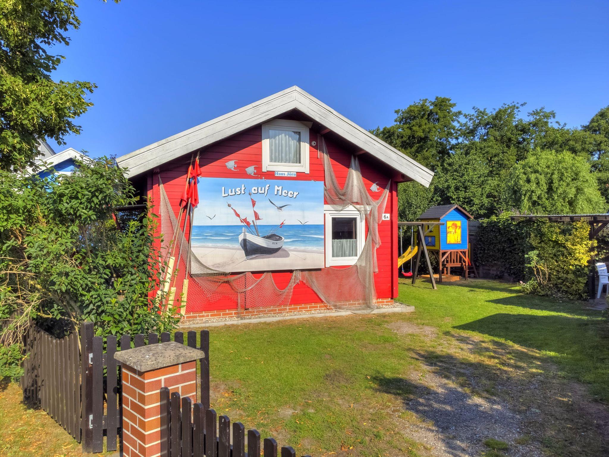 Das Ferienhaus ist von Wiese und einigen Sträuchern umgeben. Hier finden unsere kleinen Gäste einen kleinen Spielplatz mit Schaukel, Spielhaus und Buddelkasten. Für gemütliche Abende steht ein Grillplatz zur Verfügung. Abseits von Hektik und Verkehrslärm und dennoch nicht weit entfernt vom feinen Ostseestrand eignet sich unser Objekt bestens für einen entspannten Familienurlaub.