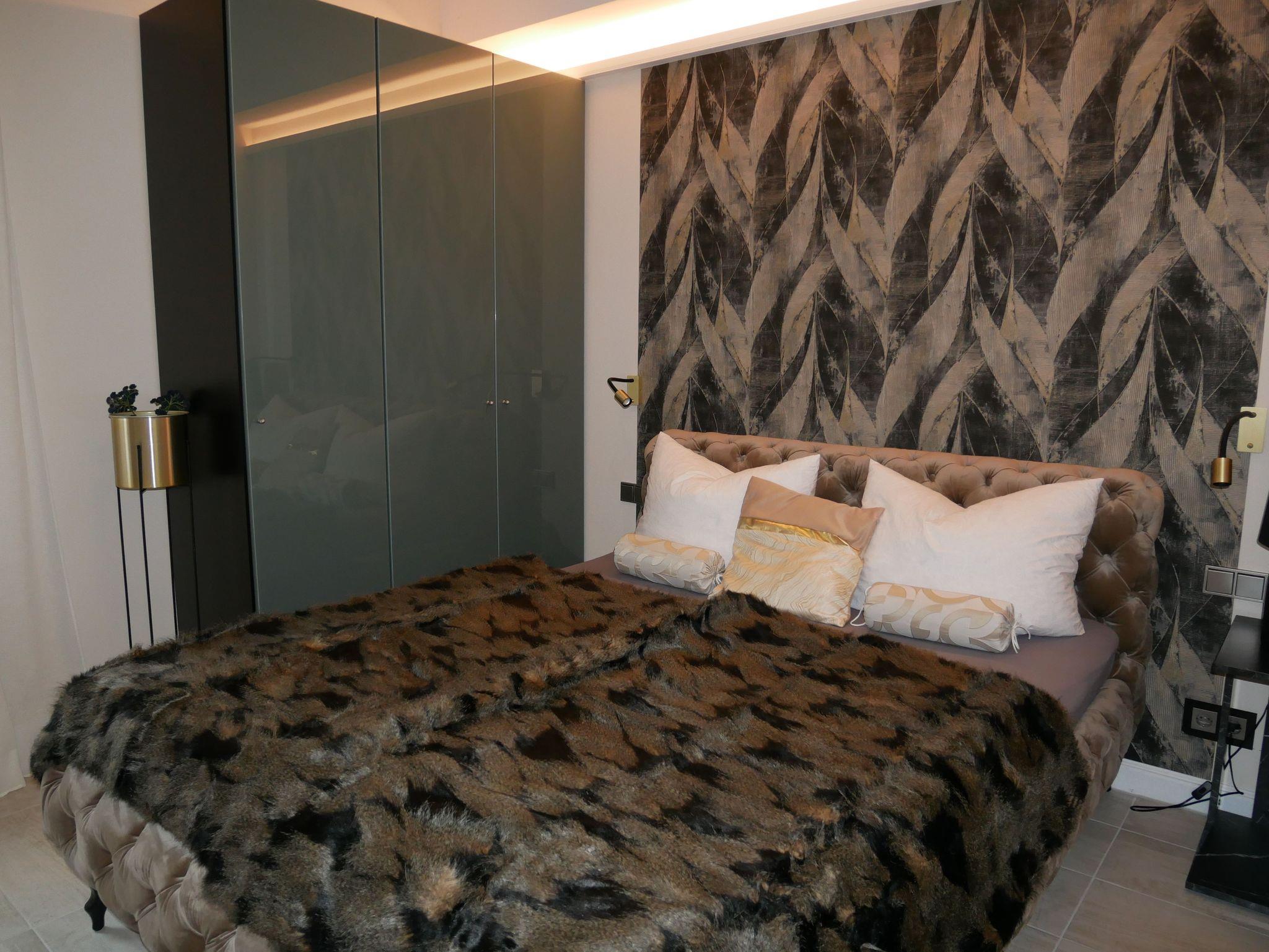 Die exquisite Nichtraucher Ferienwohnung ist 95 qm groß und verfügt über 2 Zimmer. Der großzügige offene Wohnbereich mit offener Küche verfügt über einen Essbereich und gemütlicher Sitzecke. Im Wohnbereich befindet sich neben den italienischen Designermöbeln ein TV und ein Elektrokamin. Das französische Bett im Schlafzimmer hat eine Breite von 1,60 m und besitz einen zweiten Fernseher.