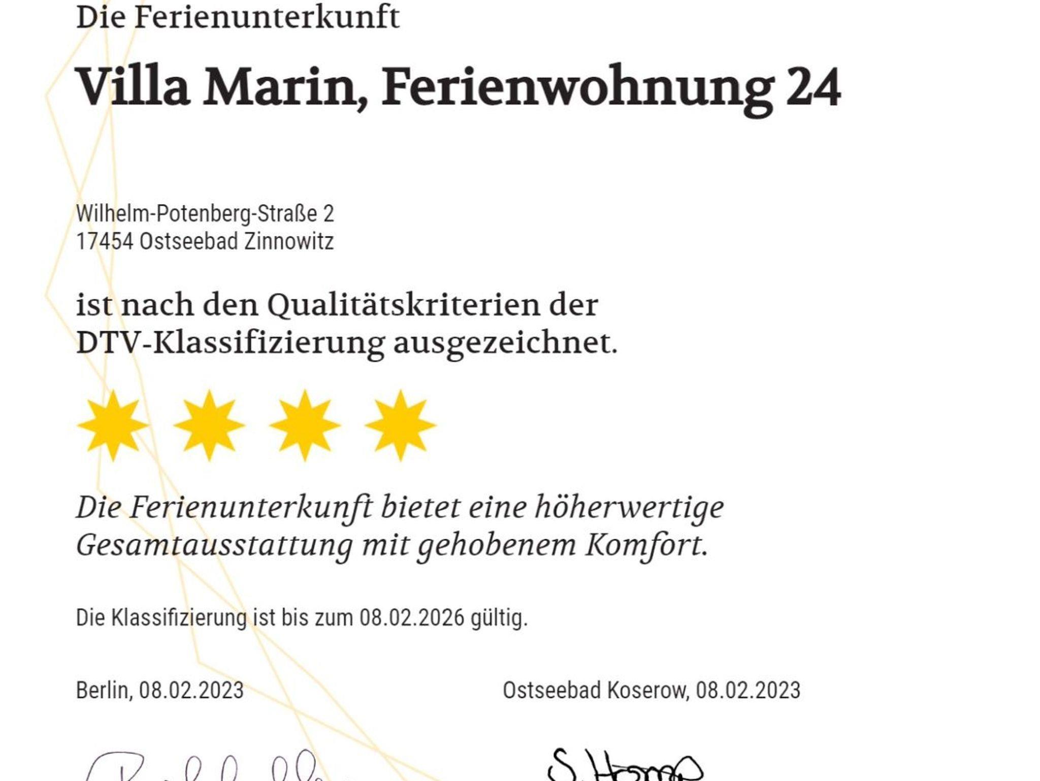 Die 47 m ² große und mit 4 DTV Sternen klassifizierte Ferienwohnung 24 befindet sich in der 2. Etage in der Villa Marin. Sie bietet mit ihren zwei Zimmern ausreichend Platz für bis zu 4 Personen.