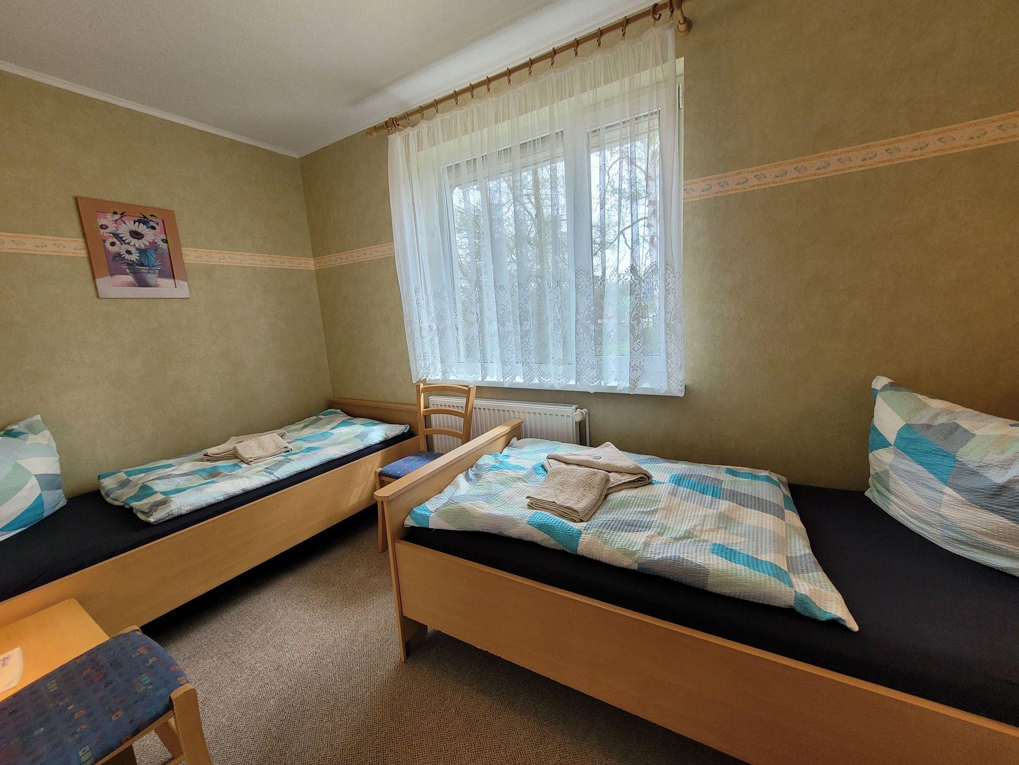 Unser Ferienhaus liegt ca.15 Geh-Minuten vom Strand entfernt in einer ruhigen Wohnlage. Die komplett eingerichtete Ferienwohnung mit Wohnzimmer, zwei Schlafzimmern mit einem Doppelbett und einmal zwei Einzelbetten, Küchenzeile, Dusche, WC, Flur und großem Balkon/Terrasse würde für Sie bereitstehen. Zur Ausstattung gehören weiter Radio, Fernseher, einmalig Bettwäsche und Handtücher. In der Küchenzeile sind Mikrowelle, Kaffeemaschine und Toaster, Eier-und Wasserkocher sowie ein 2-Platten-Kocher, Kühlschrank und Geschirr vorhanden. Eine Aufbettung ist im Wohnzimmer nach Absprache auf dem ausziehbarem Sofa möglich.