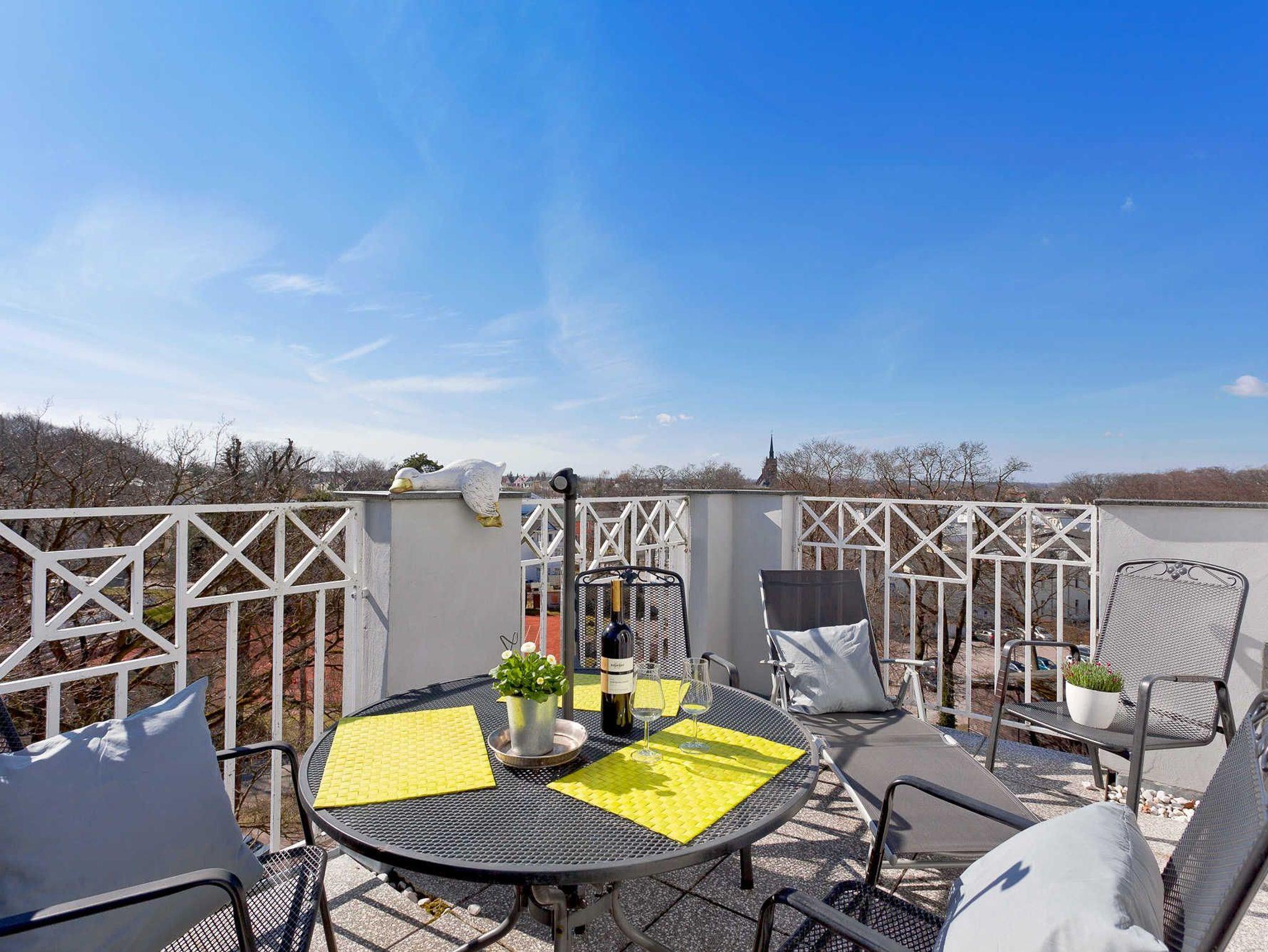 Die Jugendstilvilla liegt auf einer kleinen Anhöhe mitten in Zinnowitz auf der Insel Usedom. Mit durchschnittlich über 1906 Sonnenstunden im Jahr zählt Usedom zu den sonnenreichsten Gegenden in Deutschland und an der Ostsee. Das 700 Jahre alte Zinnowitz zählt zu den schönsten Seebädern auf eben jener Insel. Nicht nur angesehene Maler und Filmemacher zog es schon auf die Insel, auch berühmte Autoren wie Kurt Tucholsky und Theodor Fontane waren fasziniert von ihr. Letzterer beschreibt seine Gefühle 1863 in einem Brief an seine Frau mit den Worten ?? man hat Ruhe und frische Luft und diese beiden Dinge erfüllen Nerven, Herz und Lungen mit einer stillen Wonne?. Zinnowitz und seine Umgebung bieten verschiedenste Aktivitäten für jedermann. Sowohl Wald als auch Strand ermöglichen einen großen Raum zum bewandern und entdecken. Direkt neben dem Gebäude befindet sich das gelbe Theater die Blechbüchse. Auch eine Bernsteintherme und ein Club-Kino bietet die Ortschaft. Signifikant für Usedom sind die zahlreichen Orte die durch einen weitläufigen Sandstrand miteinander verbunden sind. In Zinnowitz findet man direkt am Strand eine Seebrücke mit einer Tauchgondel. Des Weiteren gibt es viele interessante Freizeitaktivitäten in der Nähe, wie Karls Erlebnis-Dorf in Koserow oder das Historisch-Technische Museum in Peenemünde.
