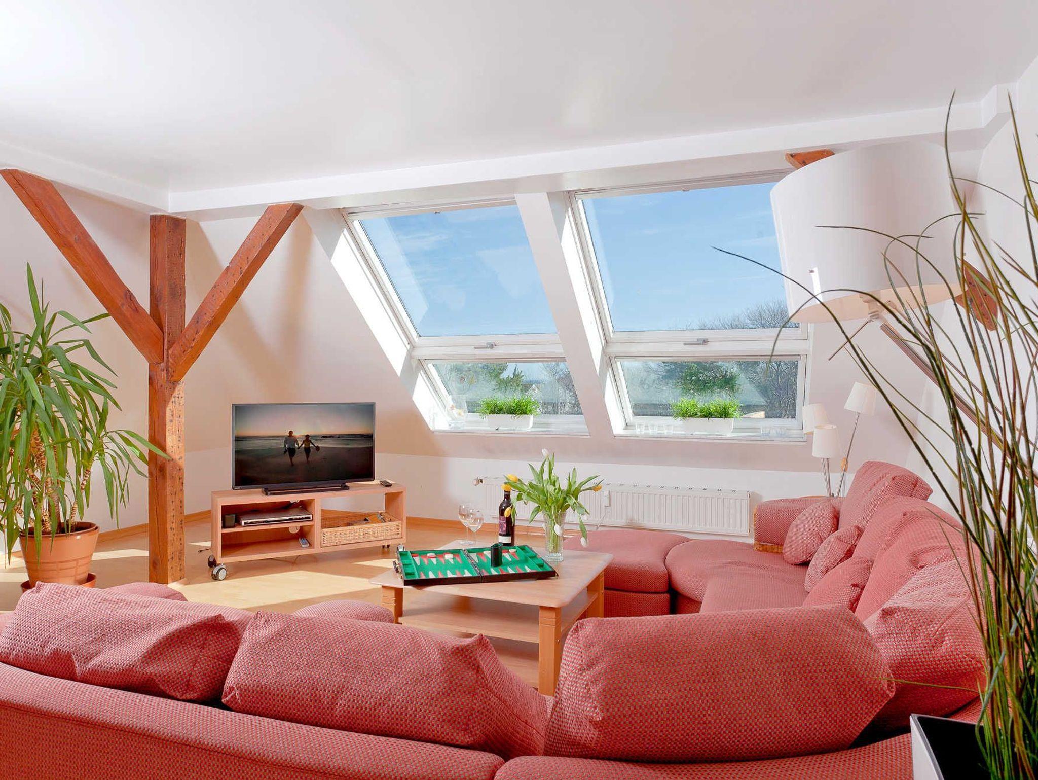Ein gemütliches Schlafzimmer ist mit einem Doppelbett ausgestattet, das andere mit zwei Einzelbetten. In einer Galerie die Sie über eine steile Raumspartreppe erreichen befindet sich ein weiteres Doppelbett. In dem gemütlich eingerichteten Wohnzimmer befinden sich Fernseher und Stereoanlage, somit können Sie auch die Zeit in Ihrer Wohnung nutzen und genießen. Das Bad in Marmor besitzt Dusche, Wanne, Doppelwaschtisch und WC. Die Wohnung hat ein zusätzliches Gäste-WC. Die Küche ist komplett eingerichtet und ermöglicht es Ihnen somit sich kulinarisch frei zu entfalten. Die große Dachterrasse mit Sonnenschirm und Gartenmöbeln eignet sich ausgezeichnet um das schöne Wetter auf der Insel zu nutzen. Ein PKW-Parkplatz für Sie befindet sich auf dem Grundstück.
