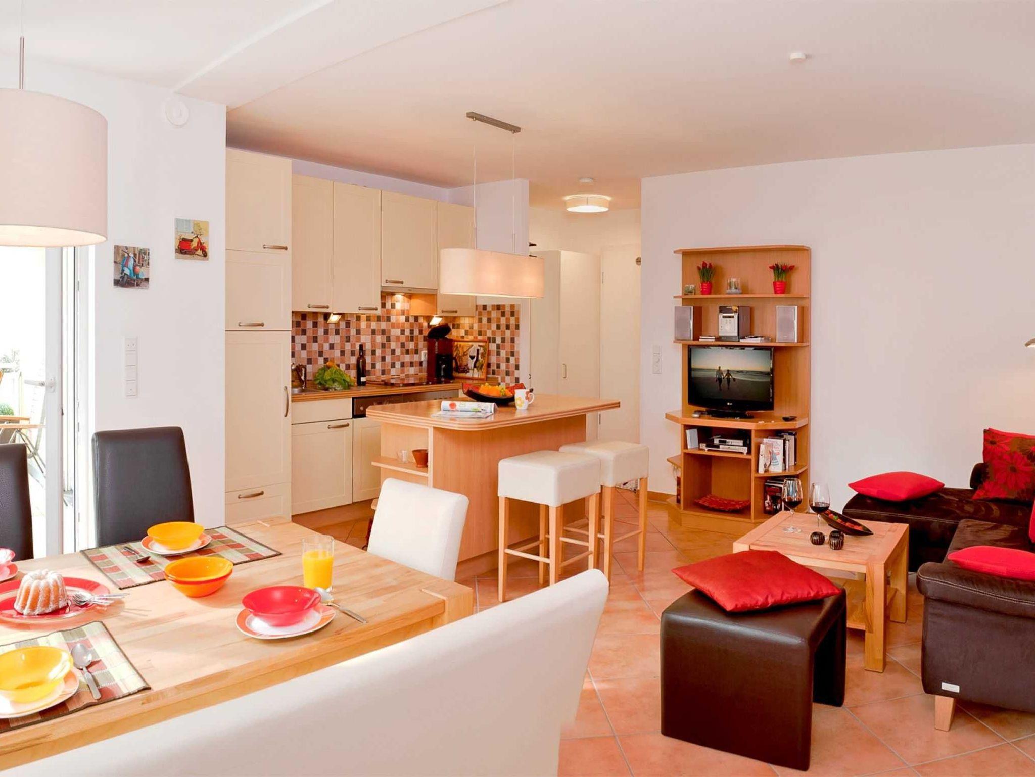 Das große gemütliche Schlafzimmer verfügt über ein Doppelbett (180x200cm) und einen geräumigen Schrank. Durch Fernseher, DVD-Player und Stereoanlage bietet der komfortable Wohnbereich einen perfekten Ort um die Zeit in der Wohnung auszunutzen. Die komplett eingerichtete Wohnküche mit Geschirrspüler und Sitztheke ermöglicht zudem eine Selbstversorgung während des Urlaubs. Das großzügige Badezimmer besitzt Dusche und WC. Auf dem großen, möblierten sowie überdachten Balkon können Sie bequem zusammensitzen. Natürlich stellen wir Ihnen einen PKW-Parkplatz zur Verfügung. WLAN ist vorhanden. Waschmaschine und Trockner können Sie gegen Entgelt verwenden.