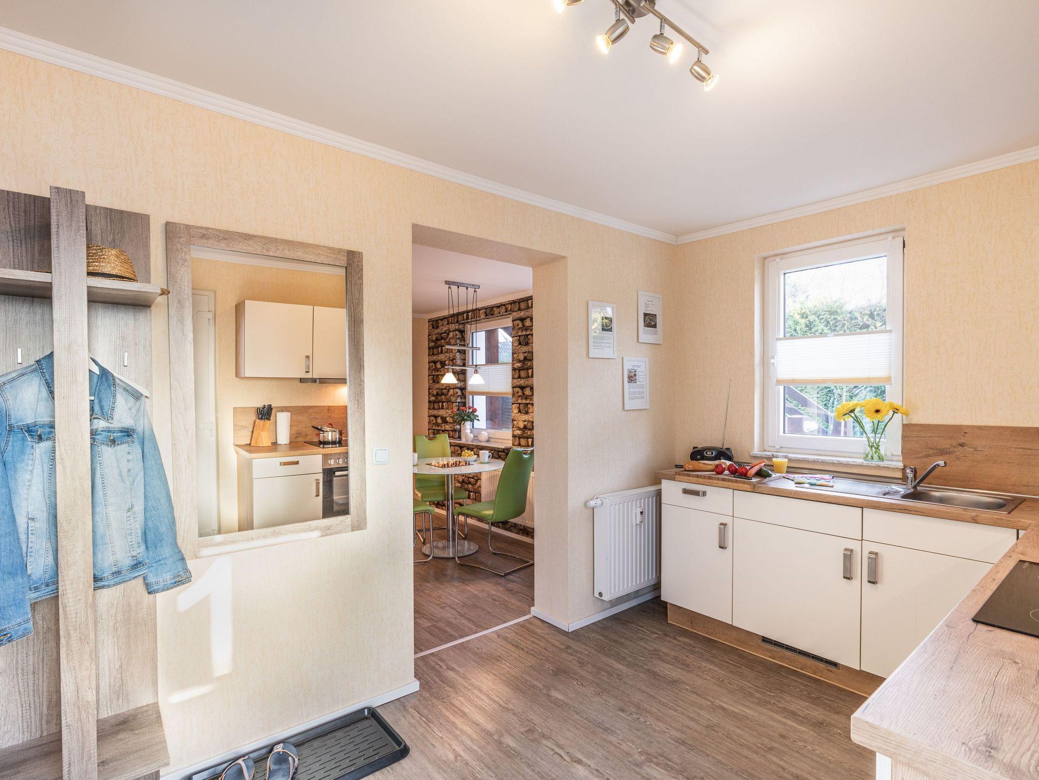 Das helle Zwei-Zimmer-Appartement mit einer Größe von 40m² befindet sich im Erdgeschoss des Ferienhauses Usedomer Flaschenpost und ist für zwei Erwachsene und ein Kleinkind bis zu drei Jahren im Babybettchen geeignet.