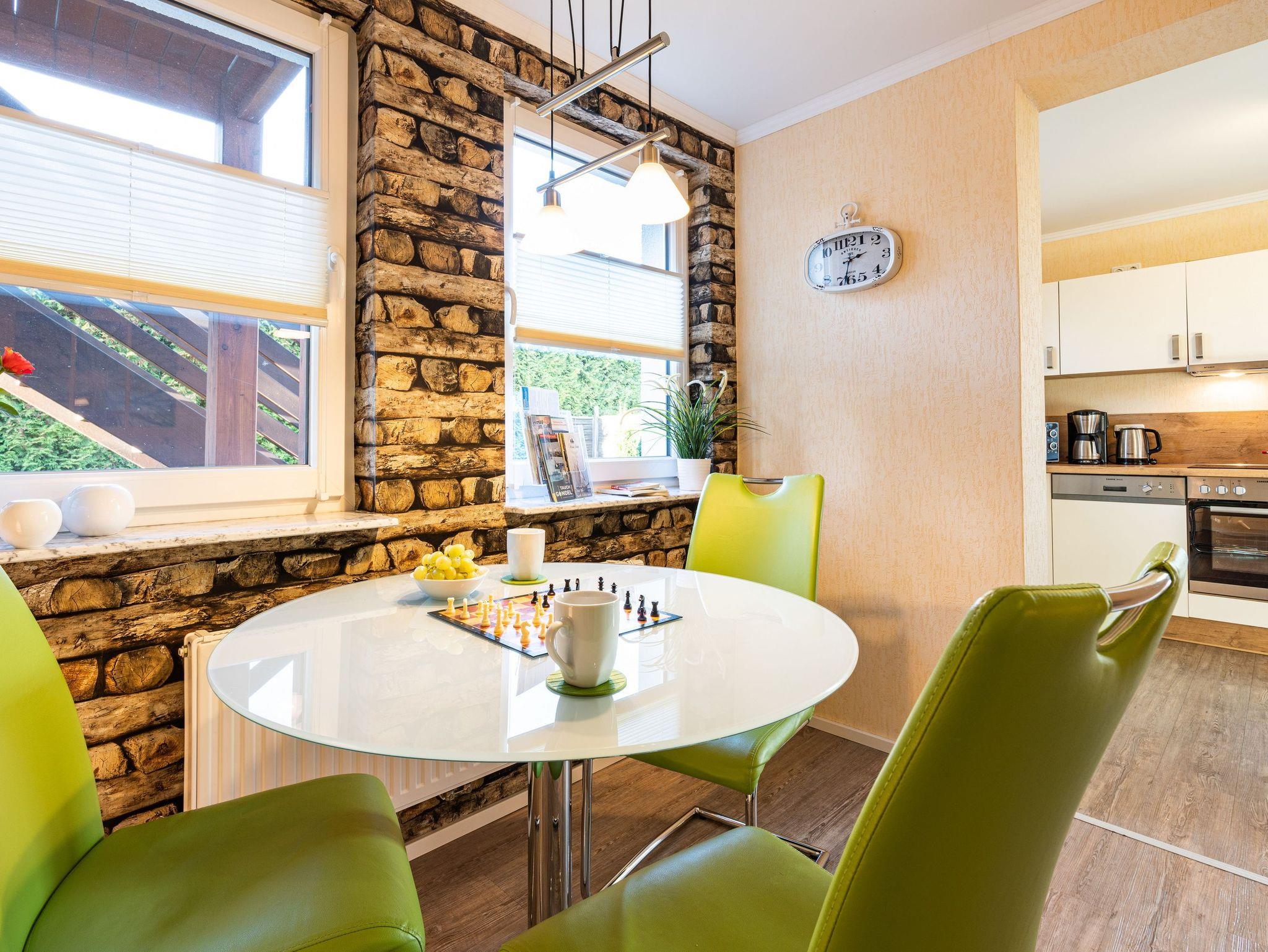 Der Wohnraum ist in hellen Farben gehalten. Sofa und FlatTV sowie ein Esstisch für zwei Personen laden zum Erholen, Entspannen und Schlemmen ein. Die separate Küche ist mit allem (Backofen, Kühlschrank mit Gefrierfach, Geschirrspüler, Mikrowelle, Wasserkocher, Toaster, Kaffeemaschine) ausgestattet, was Sie für die Zubereitung Ihrer Lieblingsspeisen benötigen.