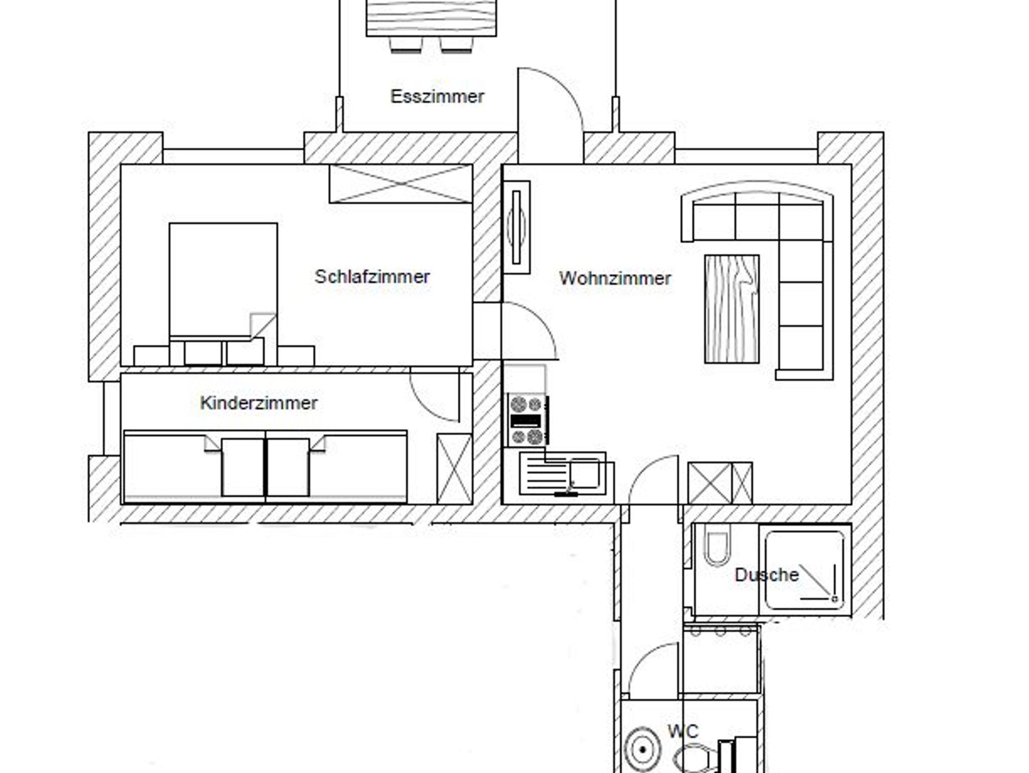 Diese familienfreundliche 3-Raum-Ferienwohnung ist für bis zu 6 Personen geeignet. Auf 70 m² befinden sich zwei Schlafzimmer, eine Wohnküche, ein Bad mit Dusche und eine Terrasse.