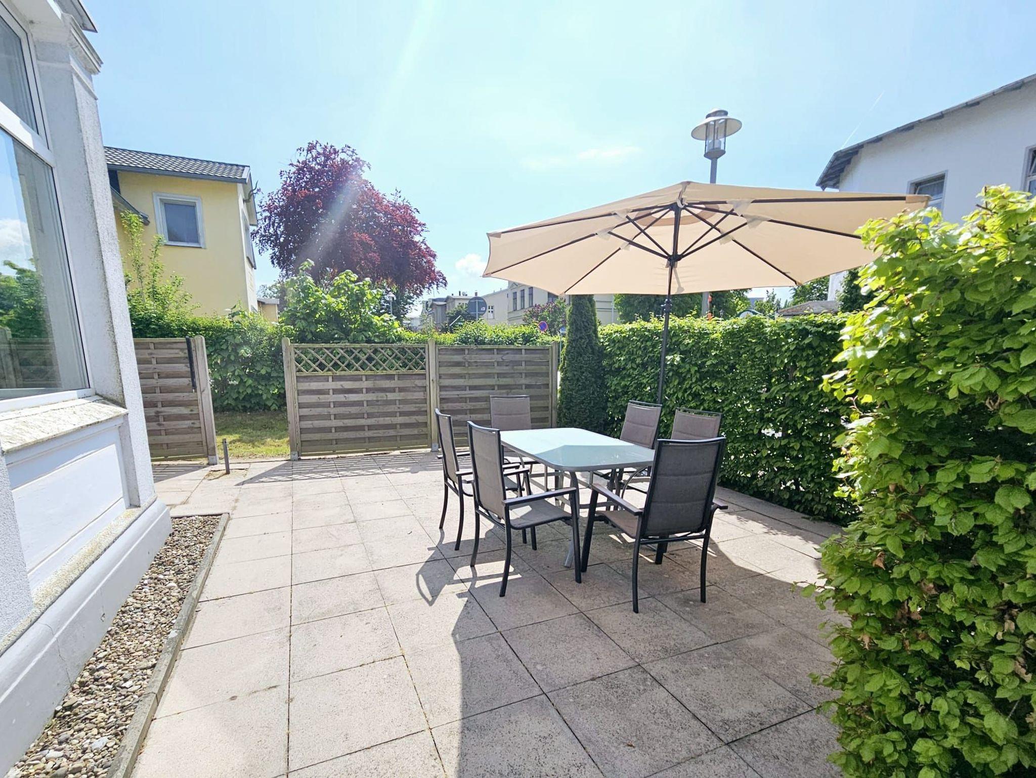 Die familienfreundliche 3-Raum Ferienwohnung befindet sich im Erdgeschoss mit Terrasse und Sitzgruppe.