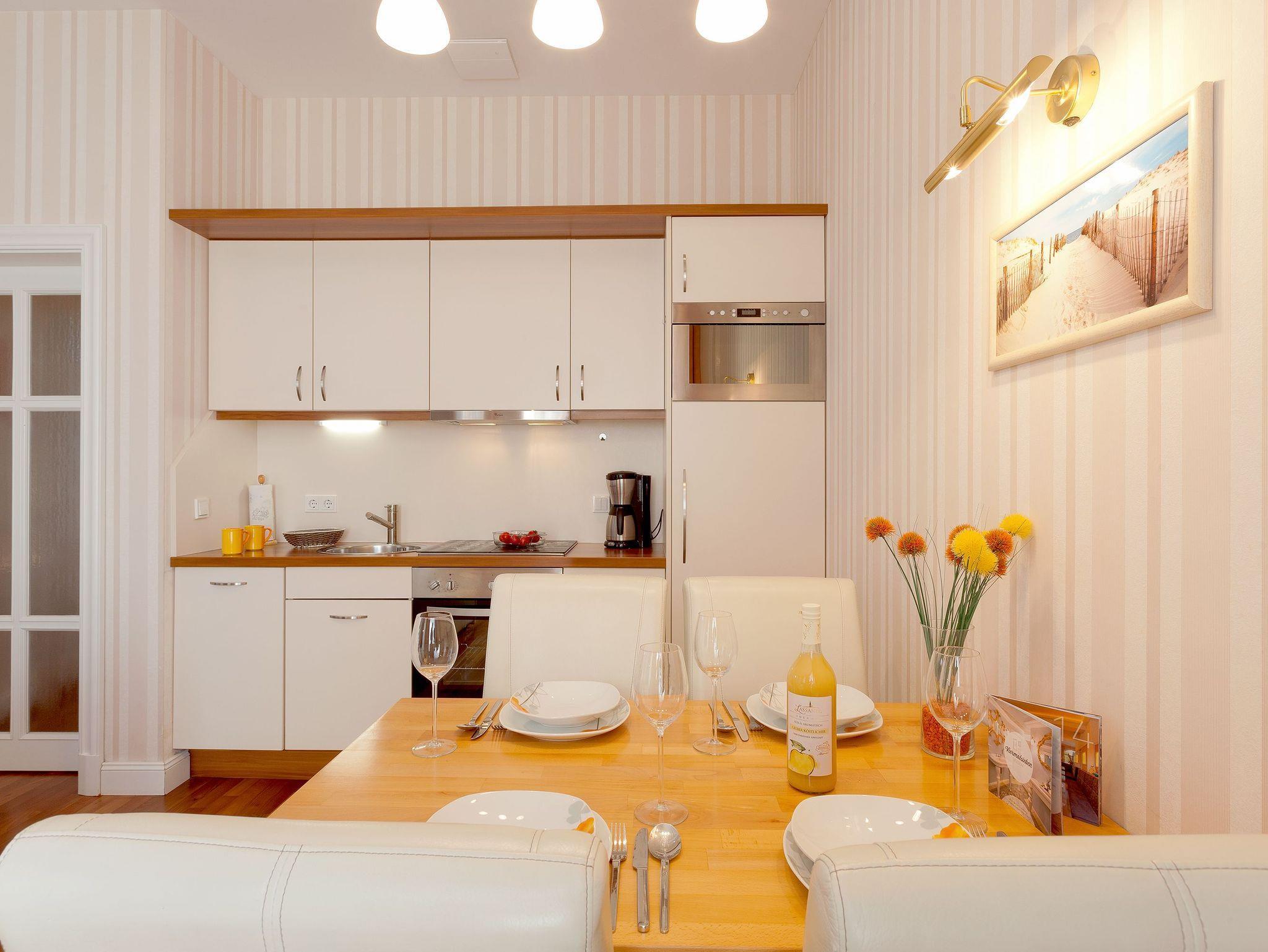 Die integrierte luxuriöse Küchenzeile lässt Dank Geschirrspüler, Kühlschrank mit Gefrierfach, Backofen, Mikrowelle, Wasserkocher, Toaster, Kaffeemaschine keine Wünsche offen. Vom Wohn- und Schlafzimmer betreten Sie Ihre private Nordost-Terrasse. Auch das Schlafzimmer ist ein Highlight. In dem bequemen Boxspringbett (160 x 200cm / zwei getrennte Matratzen) können Sie von Ihren Erlebnissen auf der schönen Insel Usedom träumen, neue Kräfte für den nächsten Tag schöpfen oder einfach vor dem TV relaxen.