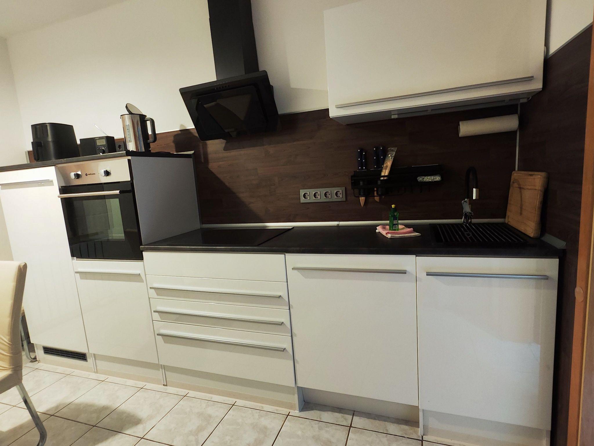 gut ausgestattete Küche mit Herd, Heißluftfritteuse, Wasserkocher, Kaffeemaschine, Toaster, Kühlschrank, Backofen , Gläser, Geschirr, Besteck, SAT-TV & WLAN.