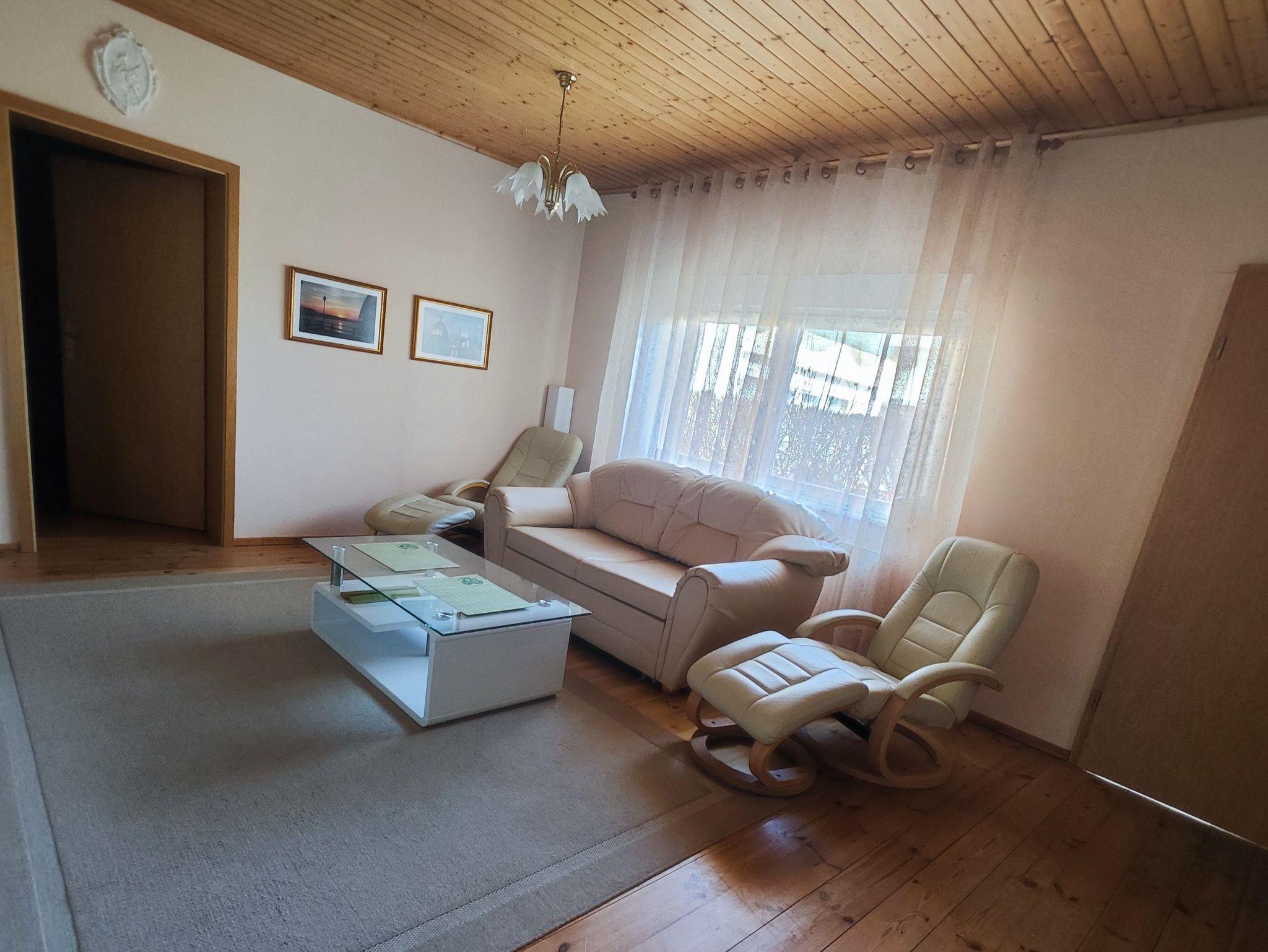 1 Wohnraum mit Couch , Couchtisch, Sessel, Anbauwand und Schlafliege 0,90x2,00m