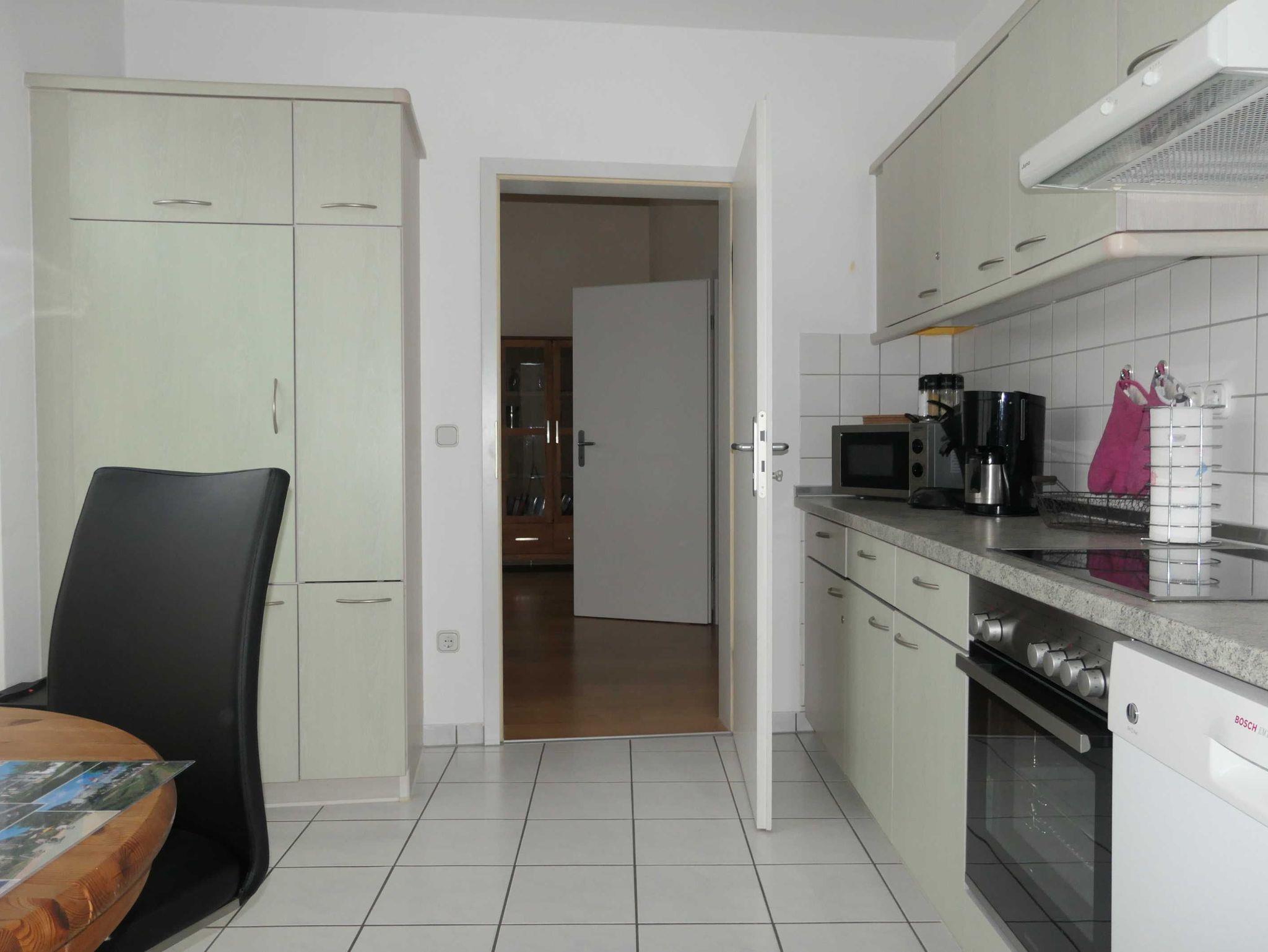• Küche mit heller Einbauküche inkl. Herd, ein grosser Kühlschrank (Kühl-Gefrier-Kombination), Mikrowelle, Eierkocher, Toaster, Kaffemaschinen , Spülmaschine, Wasserkocher, Kühlschrank, Esstisch mit Stühlen und Zugang zu einer weiteren grossen Dachterrasse mit herrlichem Ausblick.