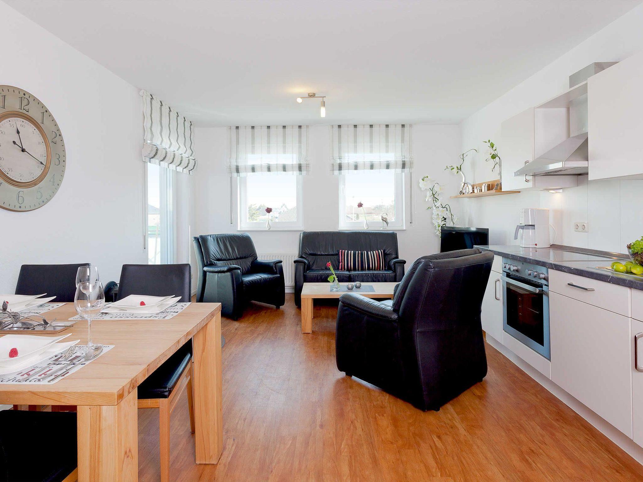 Die Wohnung verfügt über zwei gemütliche Schlafzimmer, eines davon mit einem praktischen Arbeitsplatz ? ideal für alle, die auch im Urlaub nicht ganz aufs Arbeiten verzichten möchten. Der großzügige Wohnbereich mit moderner, offener Küchenzeile und Essecke lädt zum Verweilen ein. Zur Ausstattung gehören ein Geschirrspüler, ein Flachbild-TV mit Kabel/Sat-Anschluss und kostenloses WLAN.