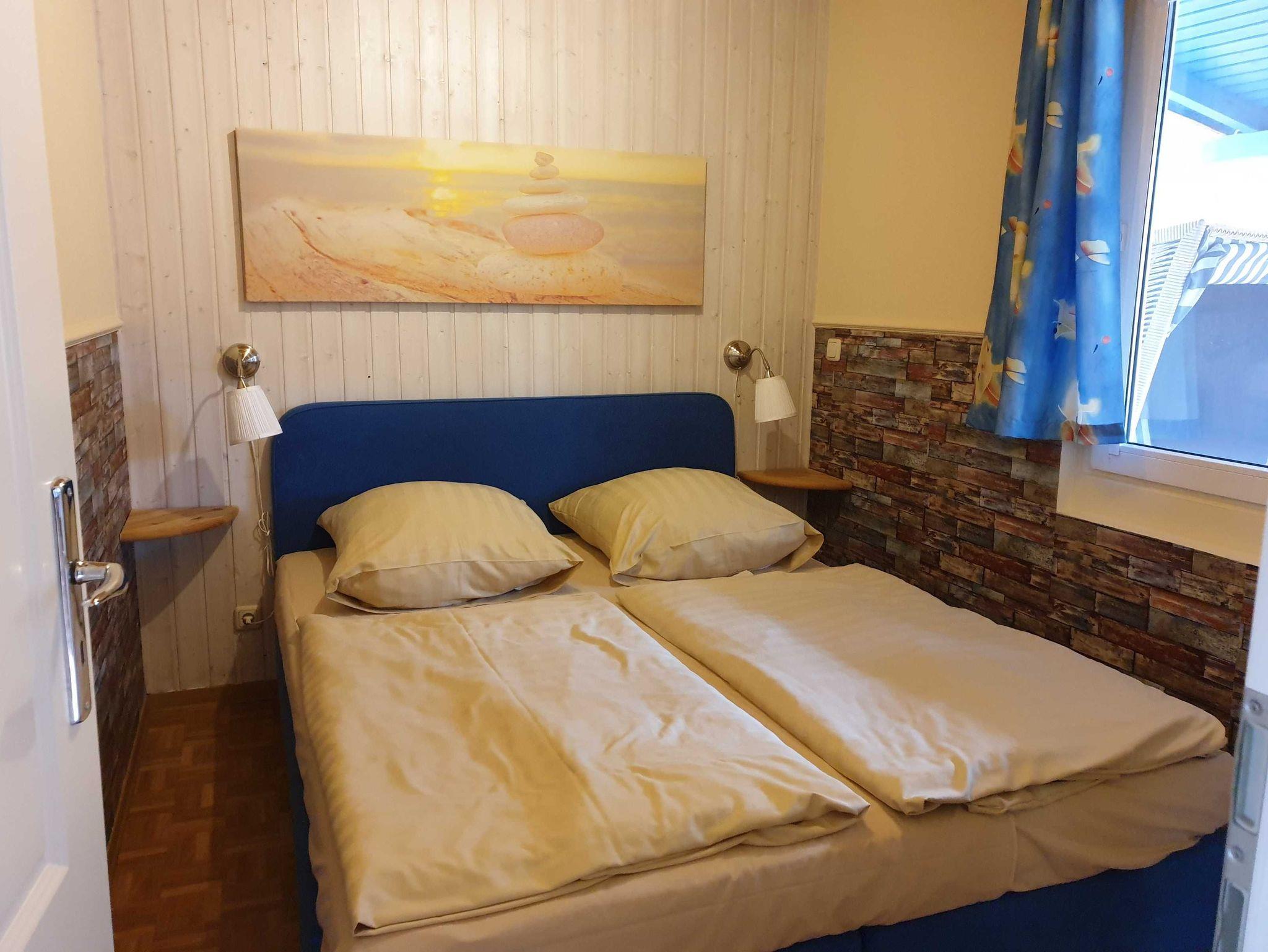 1 Schlafzimmer mit Schrank & Doppelbett (1,60 x 2 m)