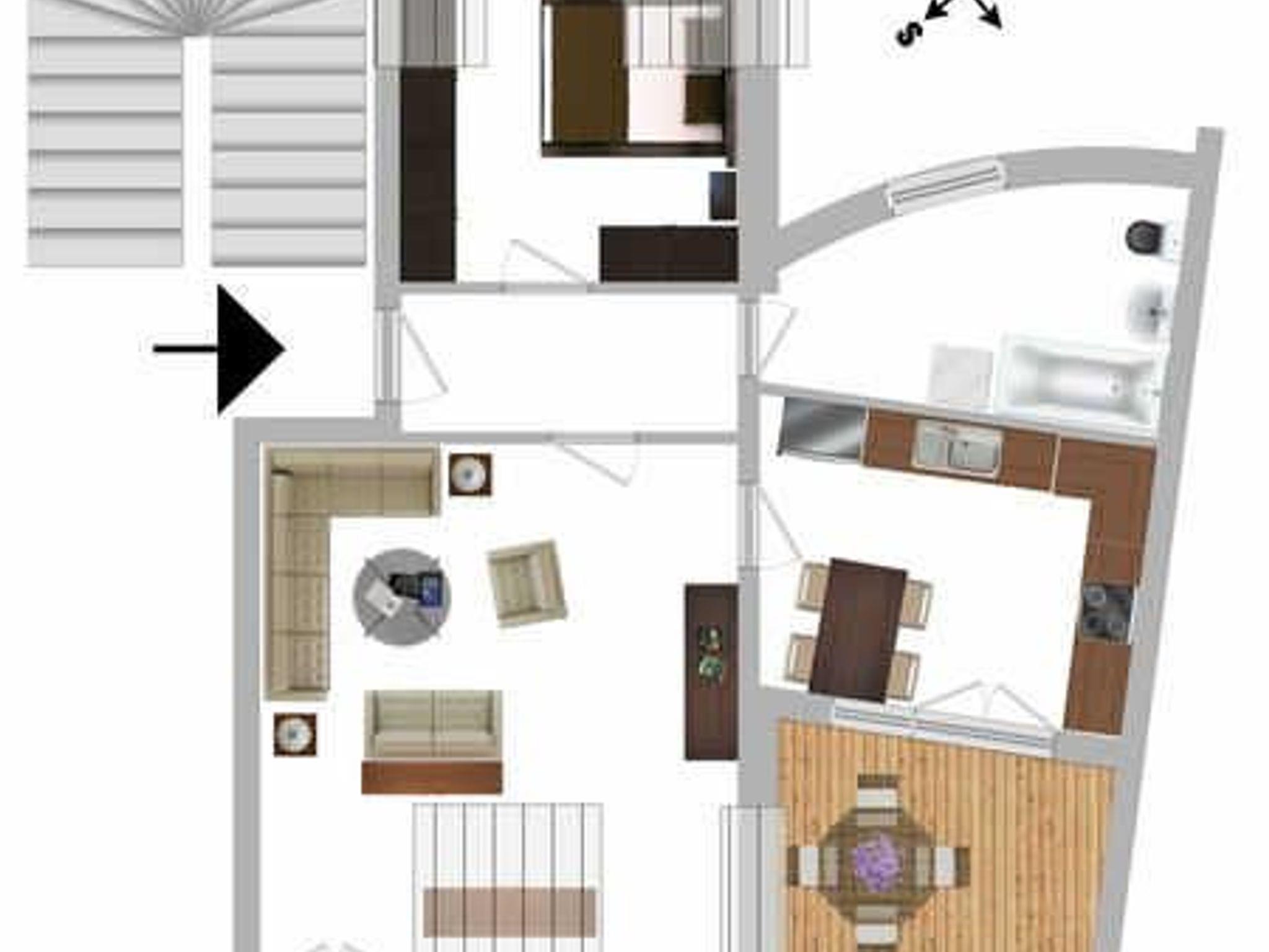 Penthouse-Ferienwohnung (Nr. 6) für bis zu 2 Personen zzgl. einem Kleinkind (ca. 62 m²) im DG mit Wohn- und Esszimmer, 1 Küche, 1 Schlafzimmer, 1 Bad und 2 Dachterrassen;