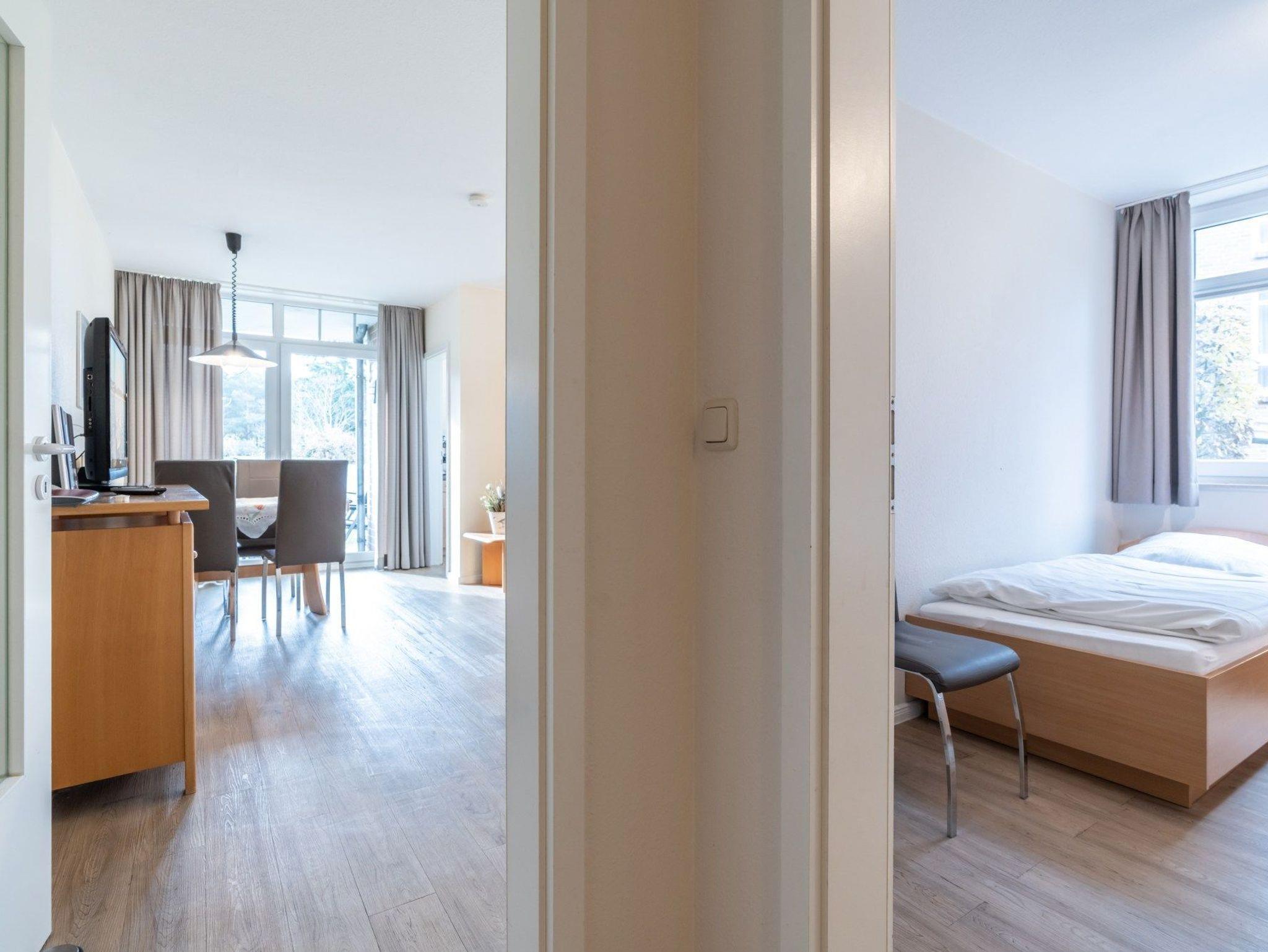 Die 61 m ² große Ferienwohnung 19 befindet sich im Erdgeschoss im Haus Roland (linkes Gebäude vom Parkplatz aus gesehen). Sie bietet mit ihren drei Zimmern ausreichend Platz für bis zu 6 Personen.