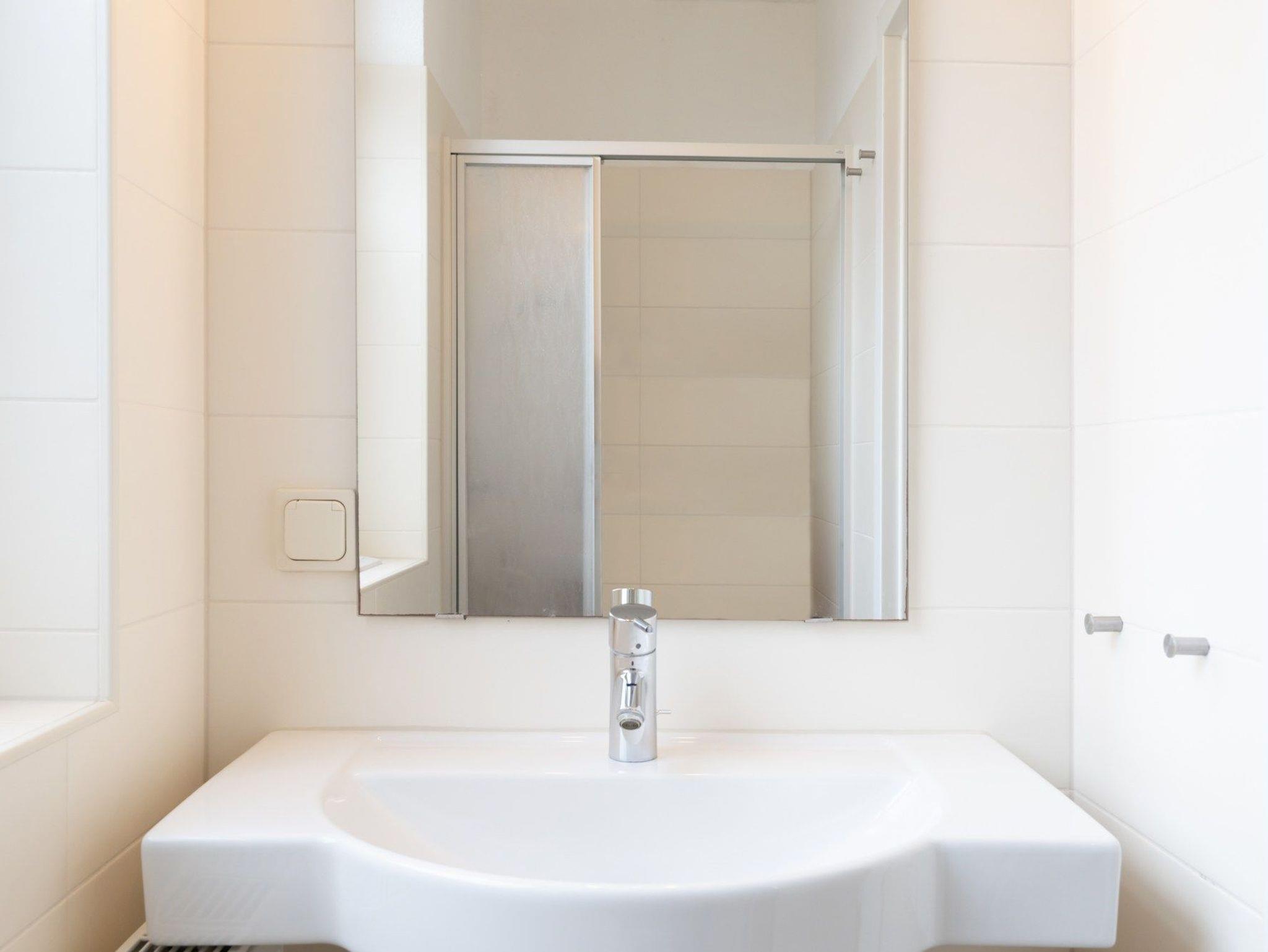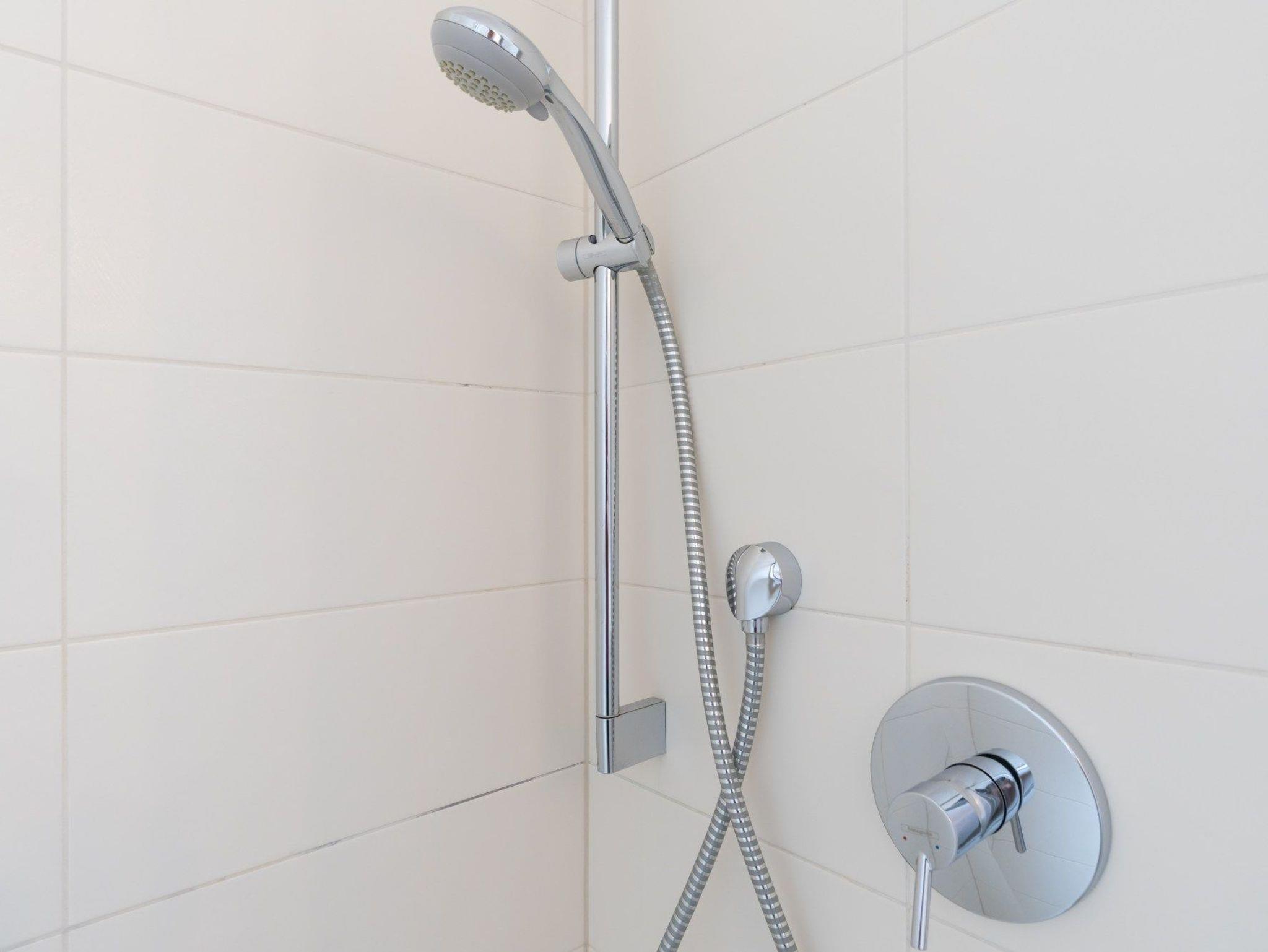 Das Badezimmer verfügt über eine Dusche und WC.